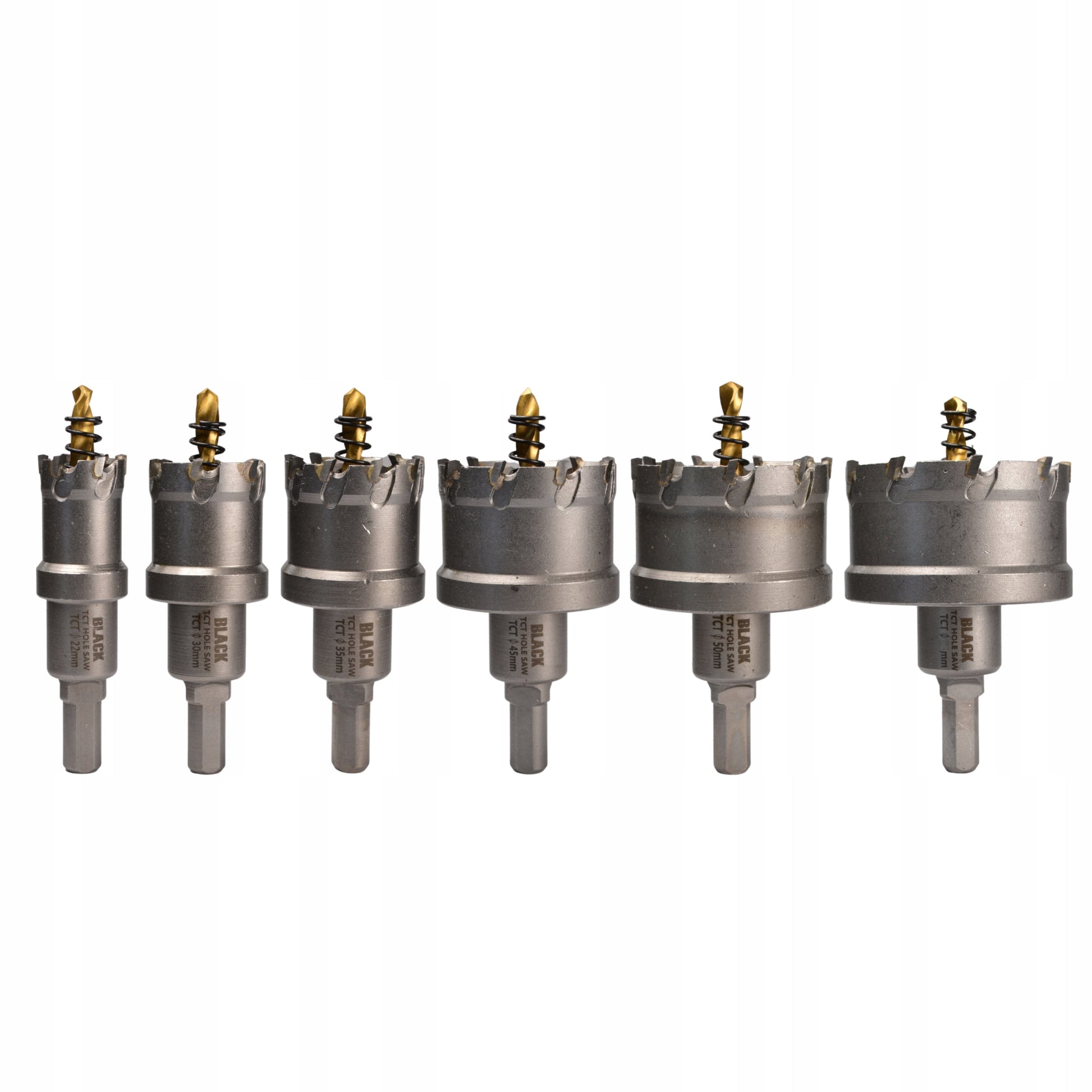 Karbidinės skylamušės / karūnos grąžtai metalui 22-65 mm 6 vnt. BLACK