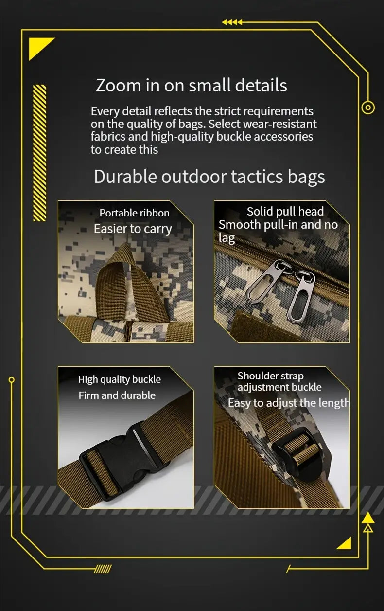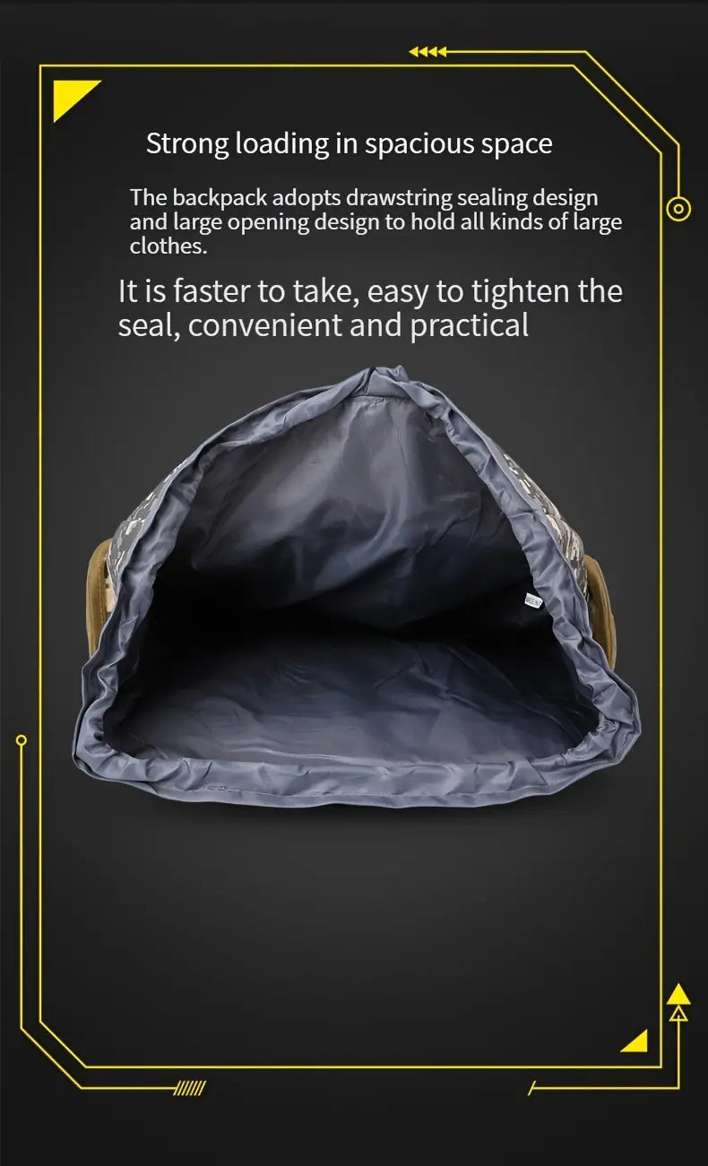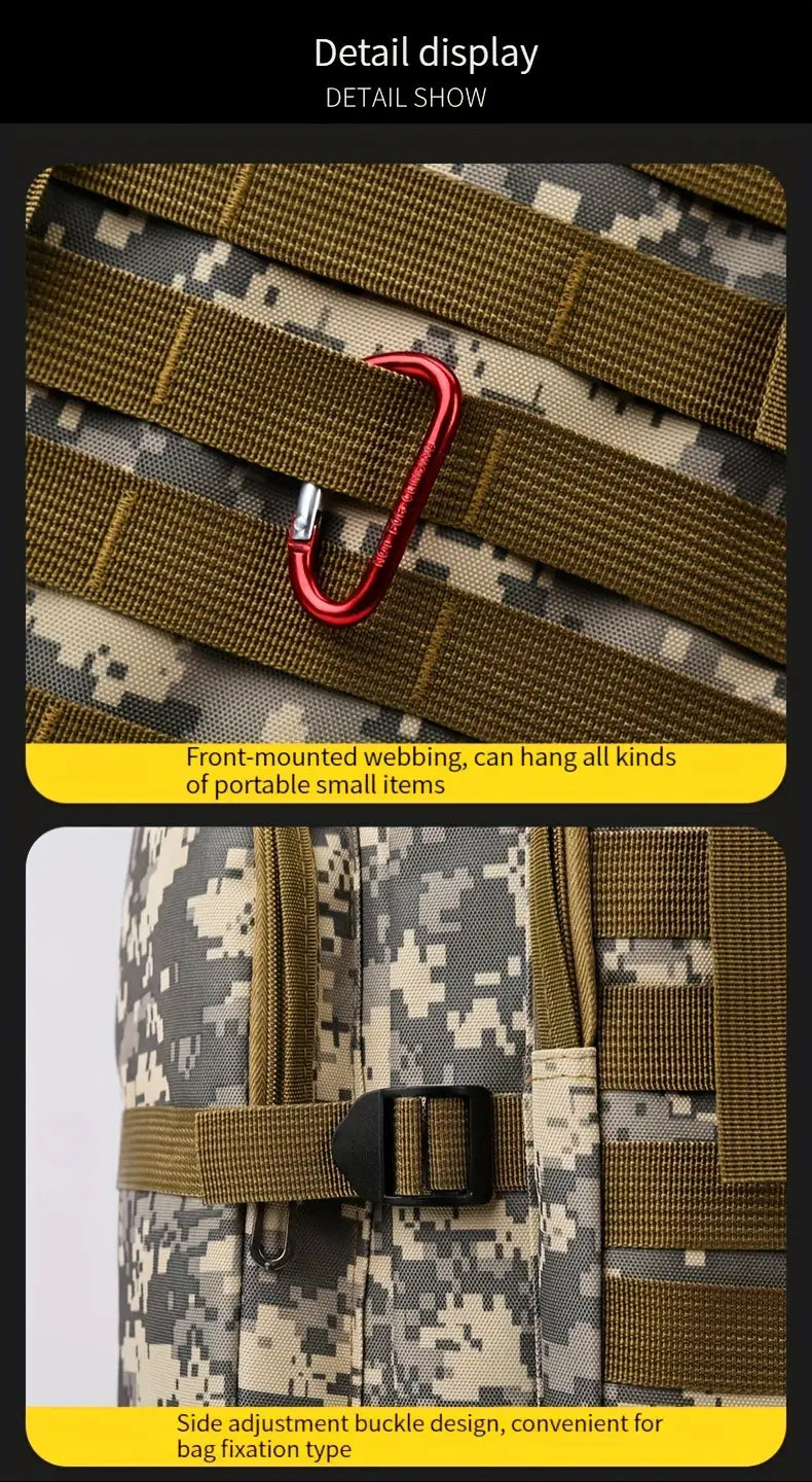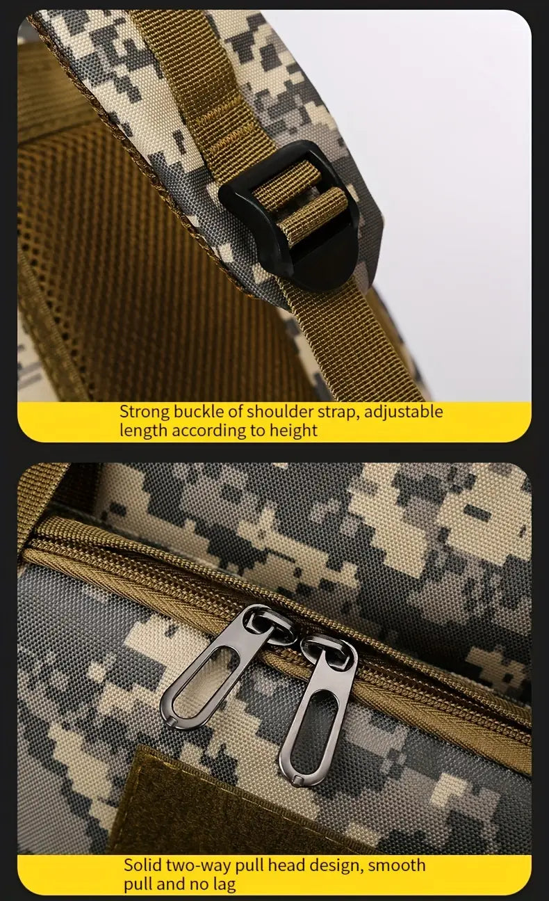 - Kareiviškas dizainas: Kuprinė pasižymi kamufliažine spalva, puikiai pritaikyta lauko ir miško aplinkai, padedanti jums likti nepastebėtam.