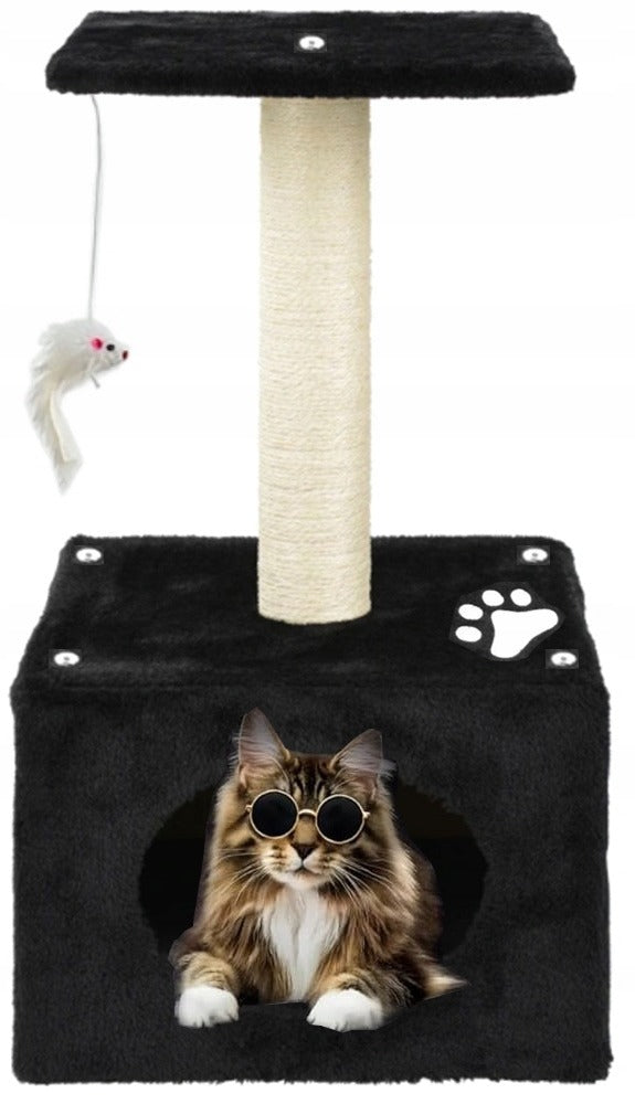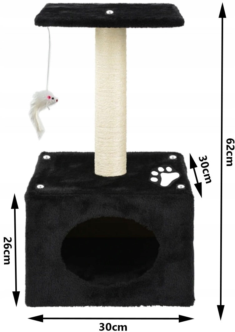 Katės draskyklė su nameliu ir guoliu – tai praktiškas ir būtinas sprendimas kiekvienam šeimininkui, kuris nori apsaugoti savo baldus bei suteikti augintiniui patogią ir saugią erdvę žaidimui, nagų galandimui bei poilsiui. Ši kompaktiška 61 cm aukščio draskyklė yra puikiai pritaikyta tiek mažoms, tiek vidutinėms katėms. Stabilus pagrindas (30×30 cm) užtikrina saugumą net aktyviai šokinėjant ar draskant, o sisalio virve aptraukti stulpai (6,5 cm skersmens) patenkins natūralų nagų galandimo poreikį. Jaukus namelis taps mėgstama vieta poilsiui ir miegui, o viršutinė platforma leis katei stebėti aplinką bei jaustis saugiai. Minkštas pliušas suteiks jaukumo, o elegantiška juoda spalva puikiai derės prie bet kokio namų interjero. Tai daugiau nei paprasta draskyklė – tai investicija į jūsų katės sveikatą, aktyvumą ir emocinę gerovę.