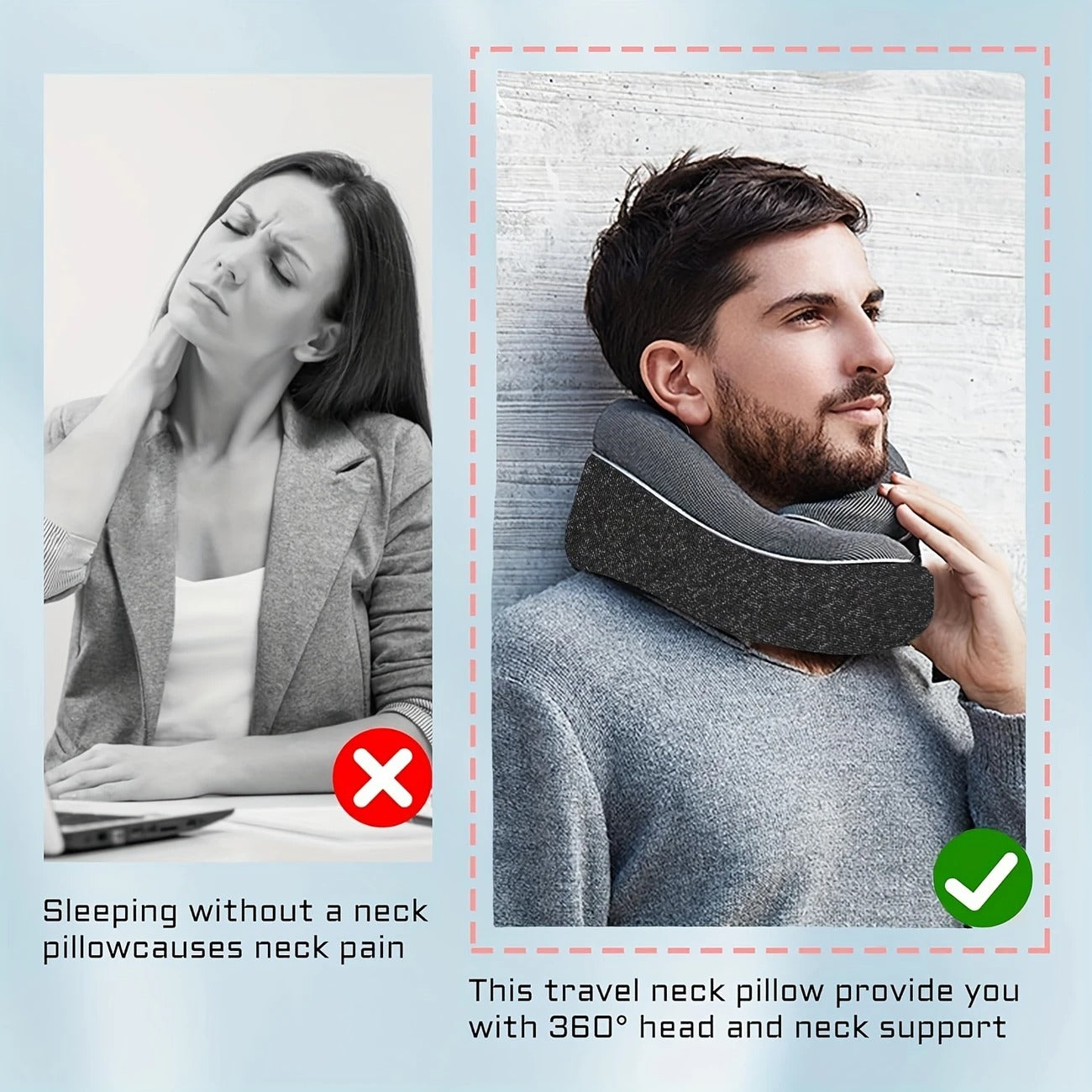 Kelioninė ergonomiška kaklo pagalvė – atminties putų kaklo atrama lėktuvui, automobiliui, miegui, reguliuojama, su laikymo maišeliu
