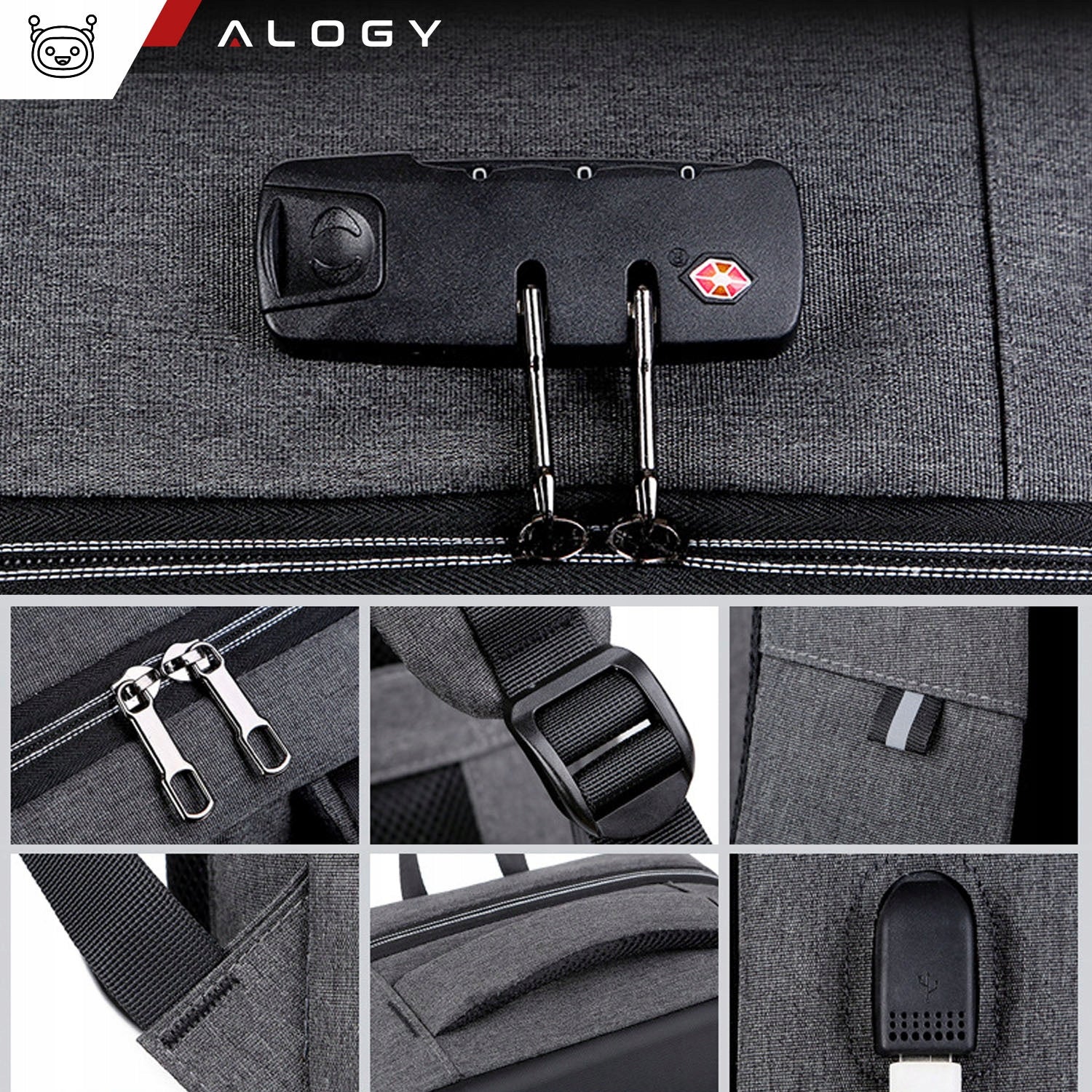 Ši Alogy Urban Safe kuprinė sukurta maksimaliam Jūsų patogumui ir daiktų saugumui. Pagrindinė medžiaga – aukštos kokybės, vandeniui atspari Oksfordo (Oxford) ir PVC medžiaga, papildyta poliesterio pamušalu, užtikrinanti ilgaamžiškumą ir lengvą priežiūrą. Ergonomiška nugaros dalis su kelių krypčių vėdinimo sistema sumažina prakaitavimą ir padidina komfortą net ilgai nešiojant. Šoninėse petnešėlėse rasite patogią mažą kišenėlę ir laikiklį akiniams. Viena petnešėlė taip pat turi specialią juostelę, leidžiančią kuprinę tvirtai pritvirtinti prie kelioninio lagamino rankenos, palengvinant judėjimą dideliuose oro uostuose ar stotyse.