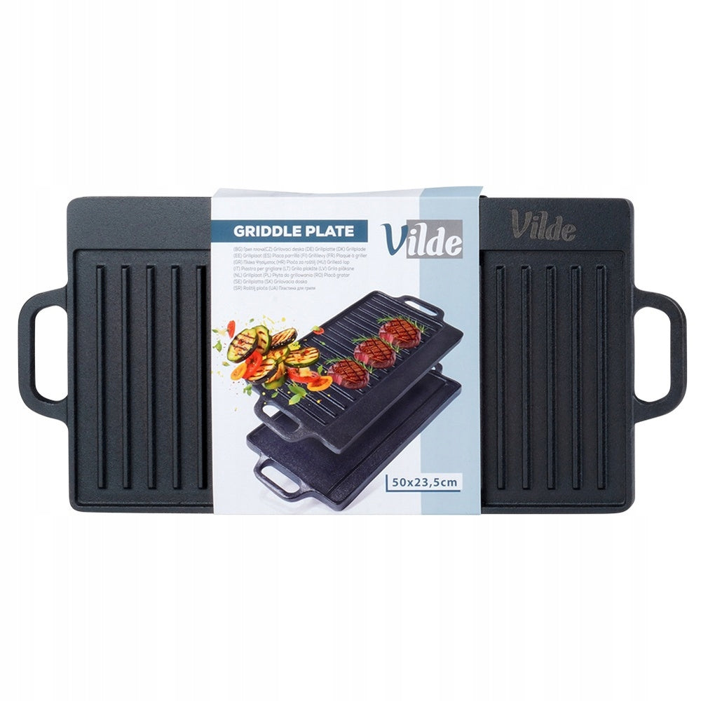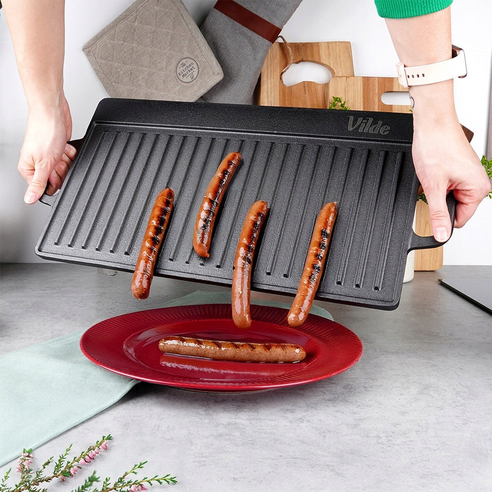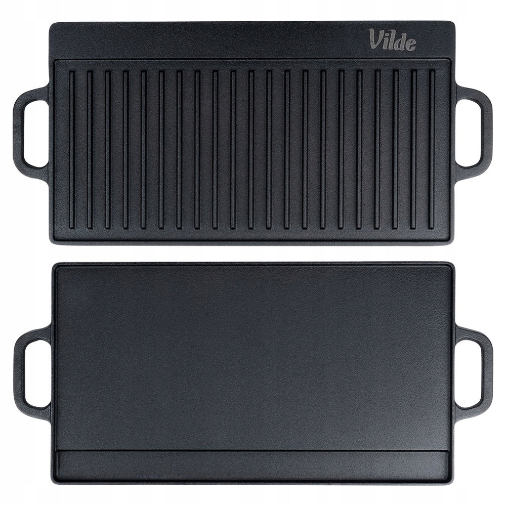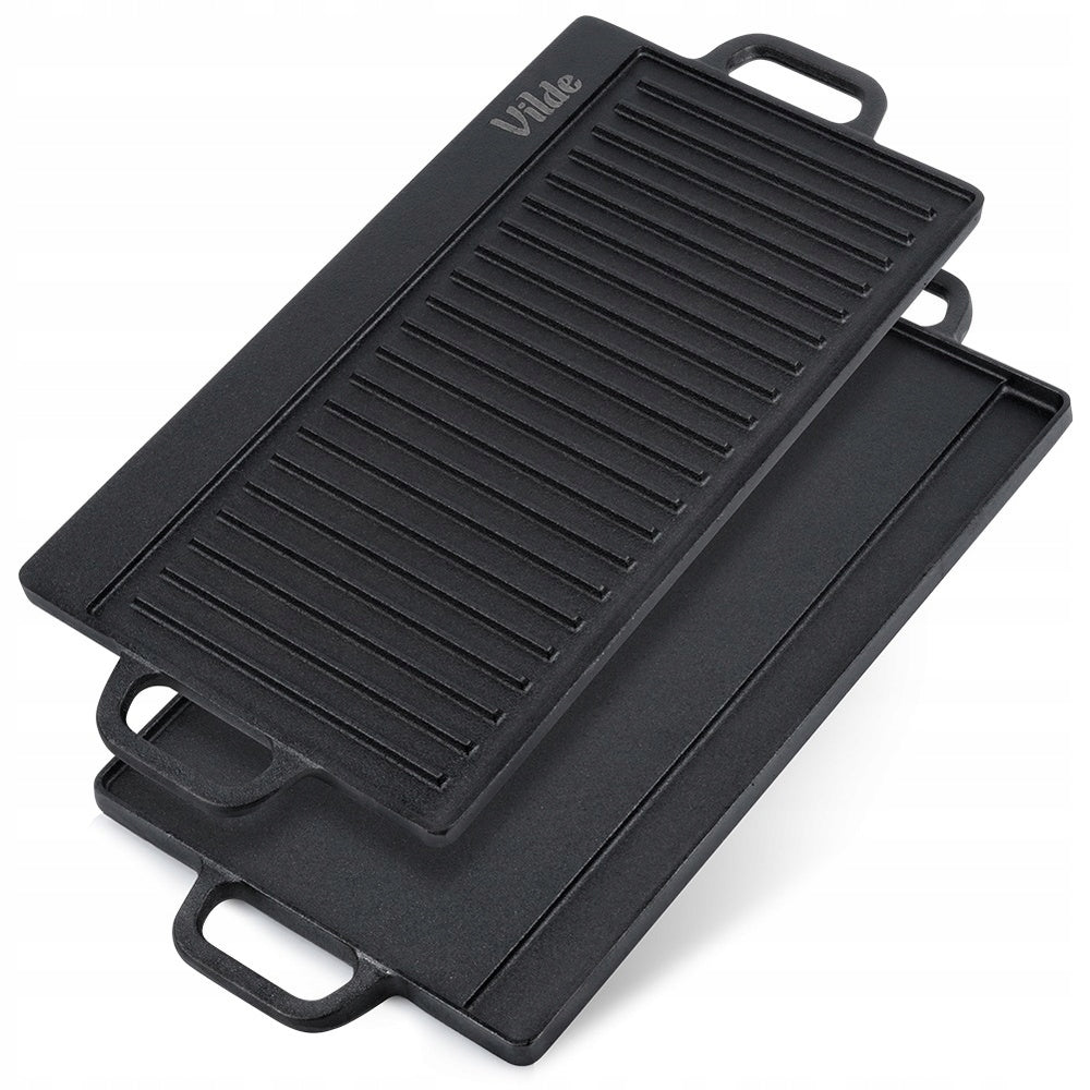 Vienas didžiausių šios ketaus plokštės privalumų yra jos dvipusis dizainas. Viena pusė yra visiškai plokščia, idealiai tinkanti blynams, omletams, keptoms daržovėms ar keptuvėje ruošiamiems patiekalams. Kita pusė – su grioveliais, sukurta klasikinėms grilio žymėms ant mėsos, žuvies ar daržovių, suteikianti joms ypatingą išvaizdą ir skonį. Galimybė rinktis paviršių pagal ruošiamą patiekalą leidžia maksimaliai išnaudoti jos universalumą ir kūrybiškumą virtuvėje.