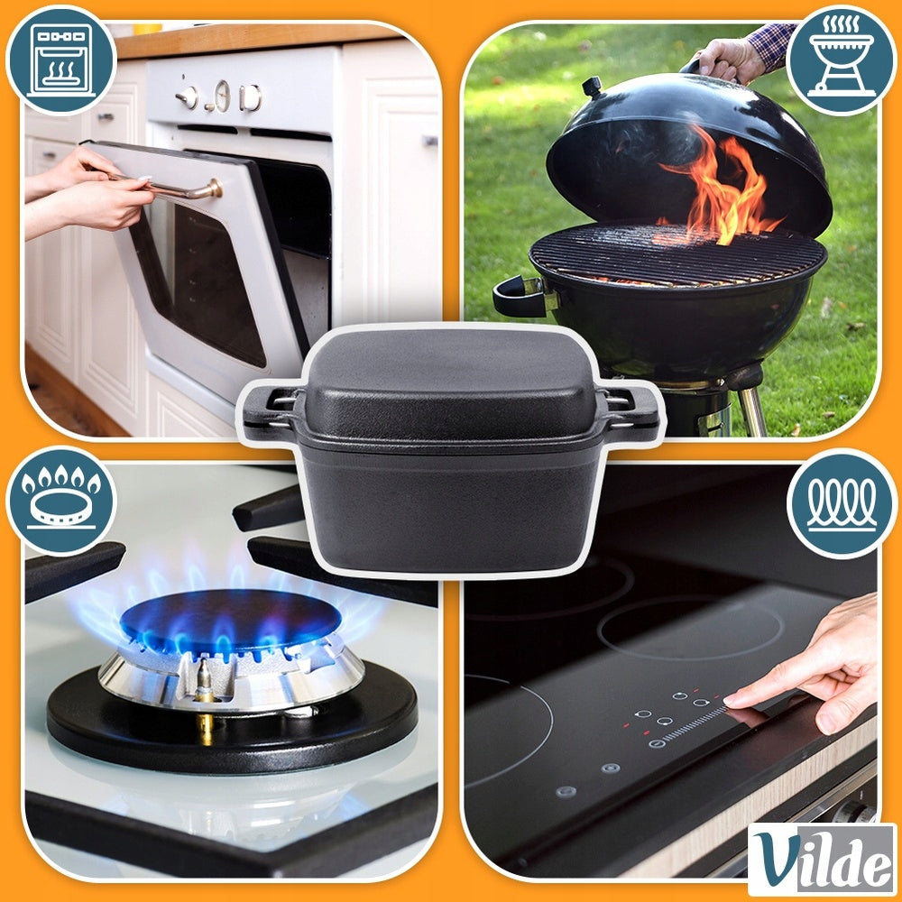 - Tinkamas visoms viryklėms ir orkaitei: Gali būti naudojamas ant dujinių, elektrinių, keramikinių, halogeninių, indukcijos viryklių, taip pat orkaitėje, grilyje ar laužo.