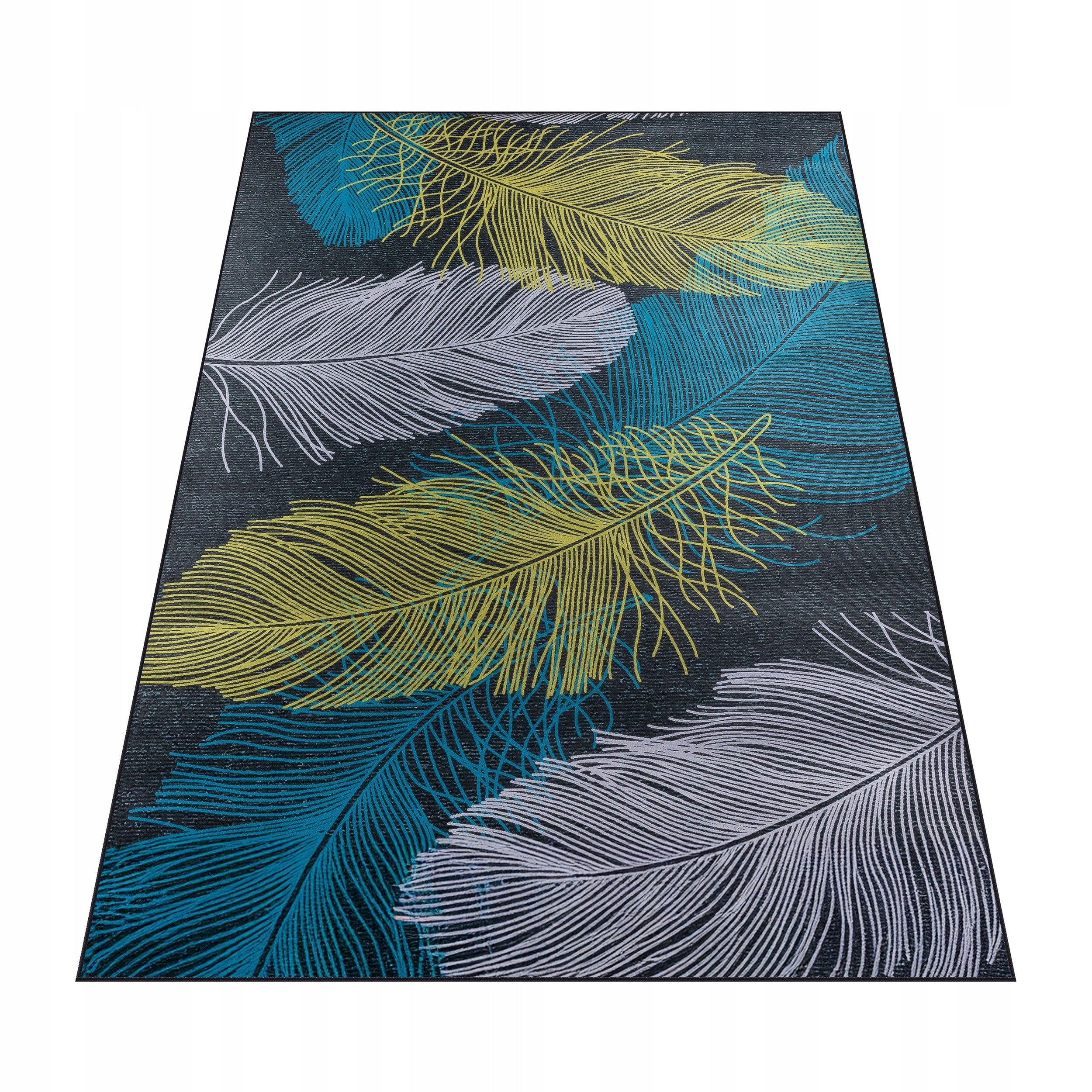 Kilimas 120x170 Juodas, Mėlynas, Geltonas, Plunksnos, Svetainei, Kambariui, Neslystantis