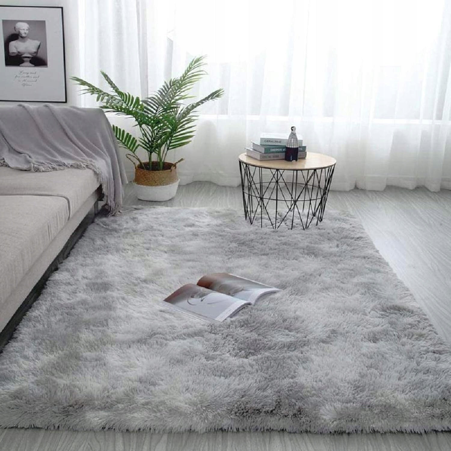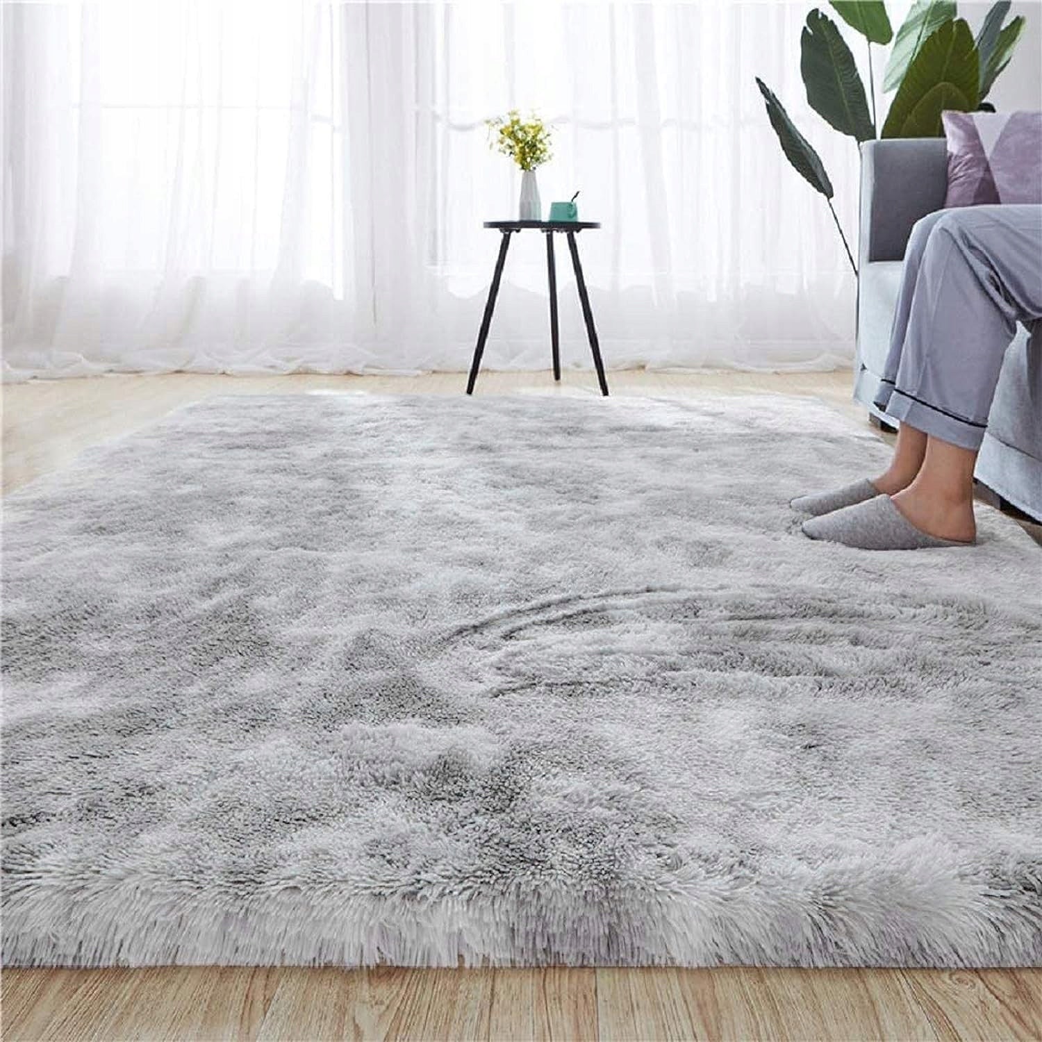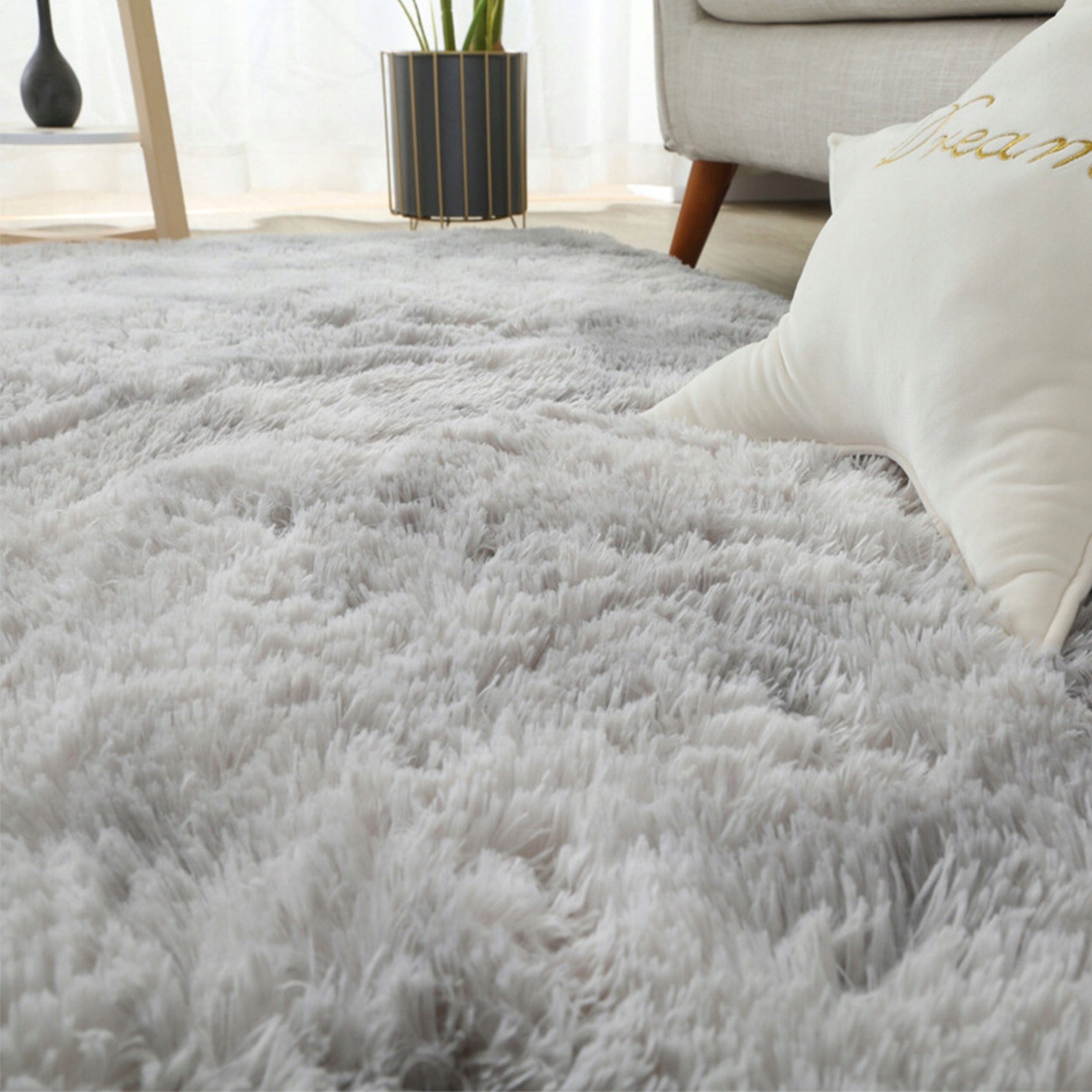 Kilimas 170x120 cm Pilkas Pūkuotas Ilgo Plauko Glamūrinis Modernus Svetainei