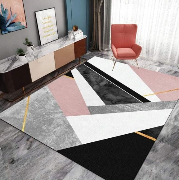 Kilimas yra pagamintas iš aukštos kokybės polipropileno, todėl yra ilgaamžis ir lengvai prižiūrimas. Jo modernus, geometrinis raštas, derinantis juodą, baltą, rožinę ir pilką atspalvius, suteikia interjerui šiuolaikiškumo ir originalumo. Nesvarbu, ar Jūsų namų dizainas minimalistinis, ar labiau klasikinis, šis kilimas taps ryškiu ir stilingu akcentu, kuris pagyvins bet kokią erdvę ir atspindės Jūsų išskirtinį skonį. Tai puiki investicija į Jūsų namų harmoniją ir estetiką.