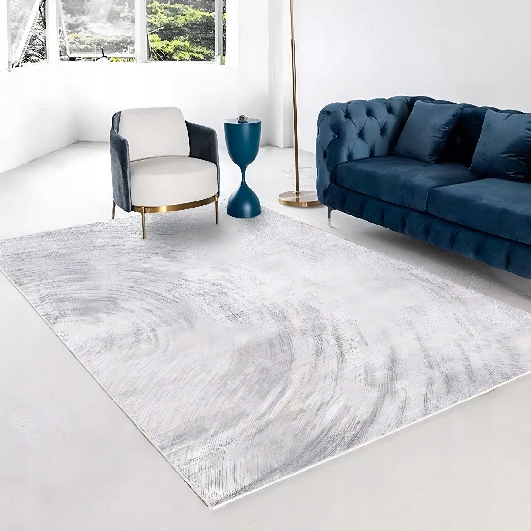 Kilimas BCF pilkas baltas svetainei, neslystantis, minkštas, 300x200cm, trumpas plaukelis