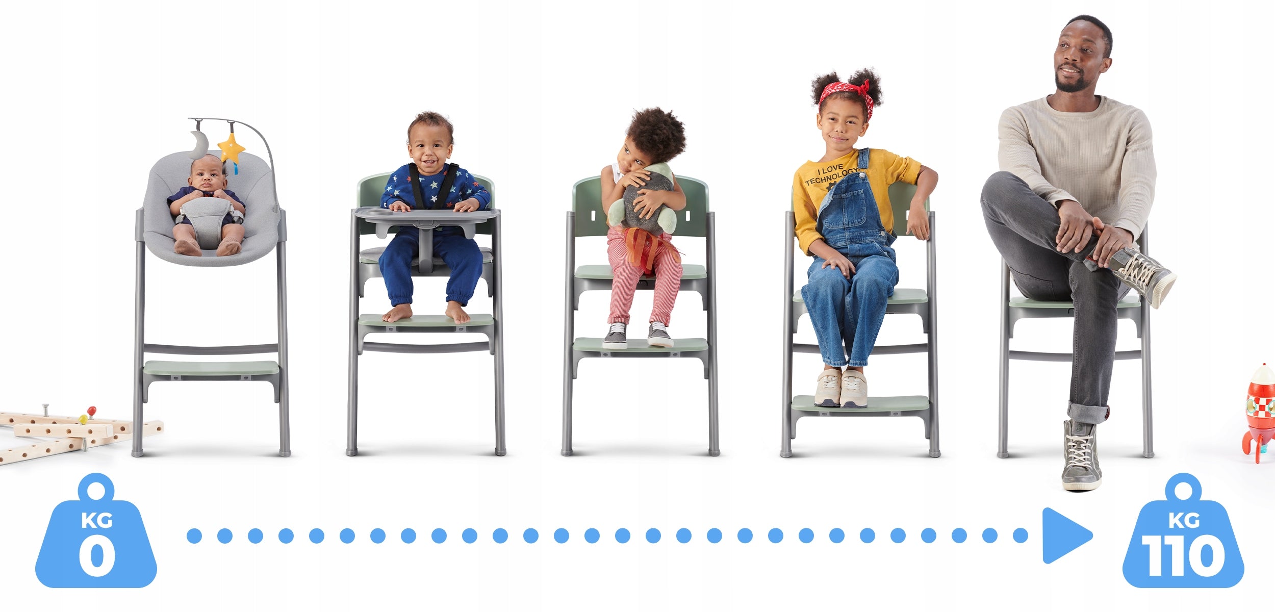 - Universalumas 4in1: Supynėlė, maitinimo kėdutė, vaiko krėslas, suaugusiojo kėdė.