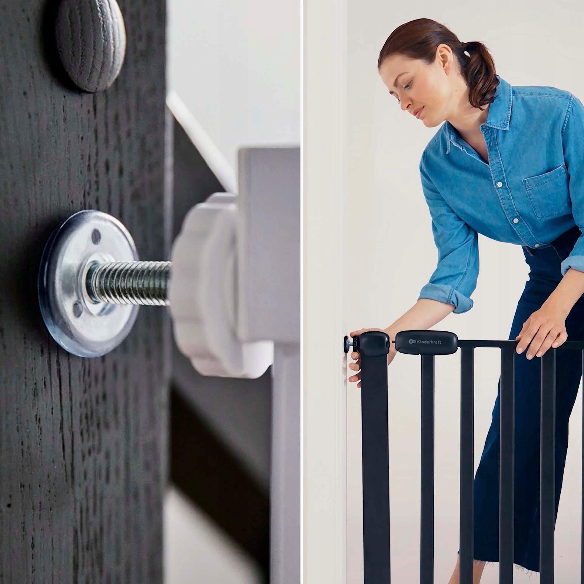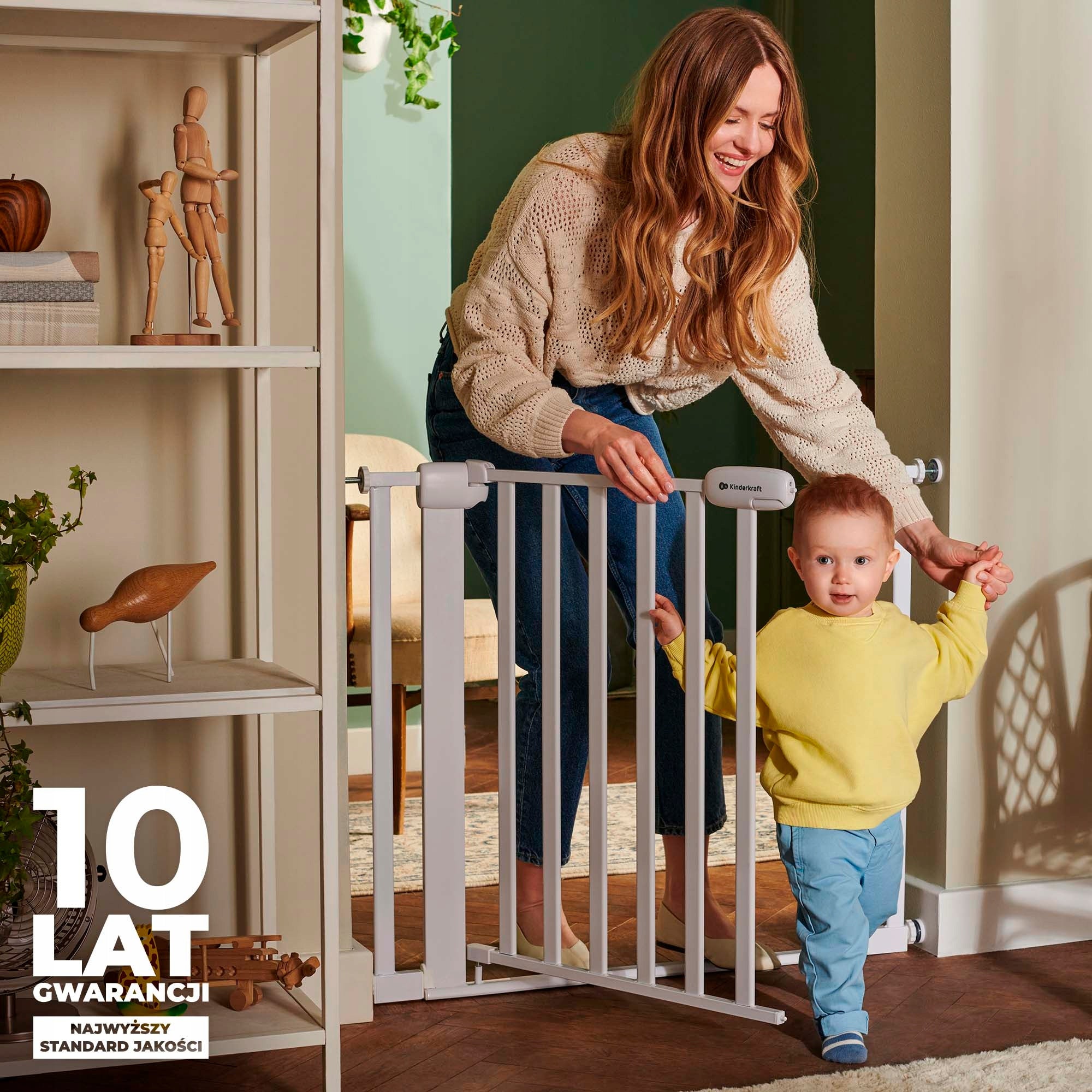Sukurkite saugią aplinką savo mažyliui su Kinderkraft LOCK&GO apsaugine tvorele. Ši tvorelė idealiai tinka apsaugoti vaikus nuo pavojaus laiptų apačioje ar viršuje, taip pat saugiai atskirti tam tikras namų erdves. Ji montuojama be gręžimo, tiesiog išskleidžiama tinkamu kampu, o jos reguliuojamas plotis (75-103 cm) užtikrina pritaikymą daugumai standartinių ir nestandartinių durų angų bei praėjimų. Elegantiškas dizainas dera prie bet kokio interjero.