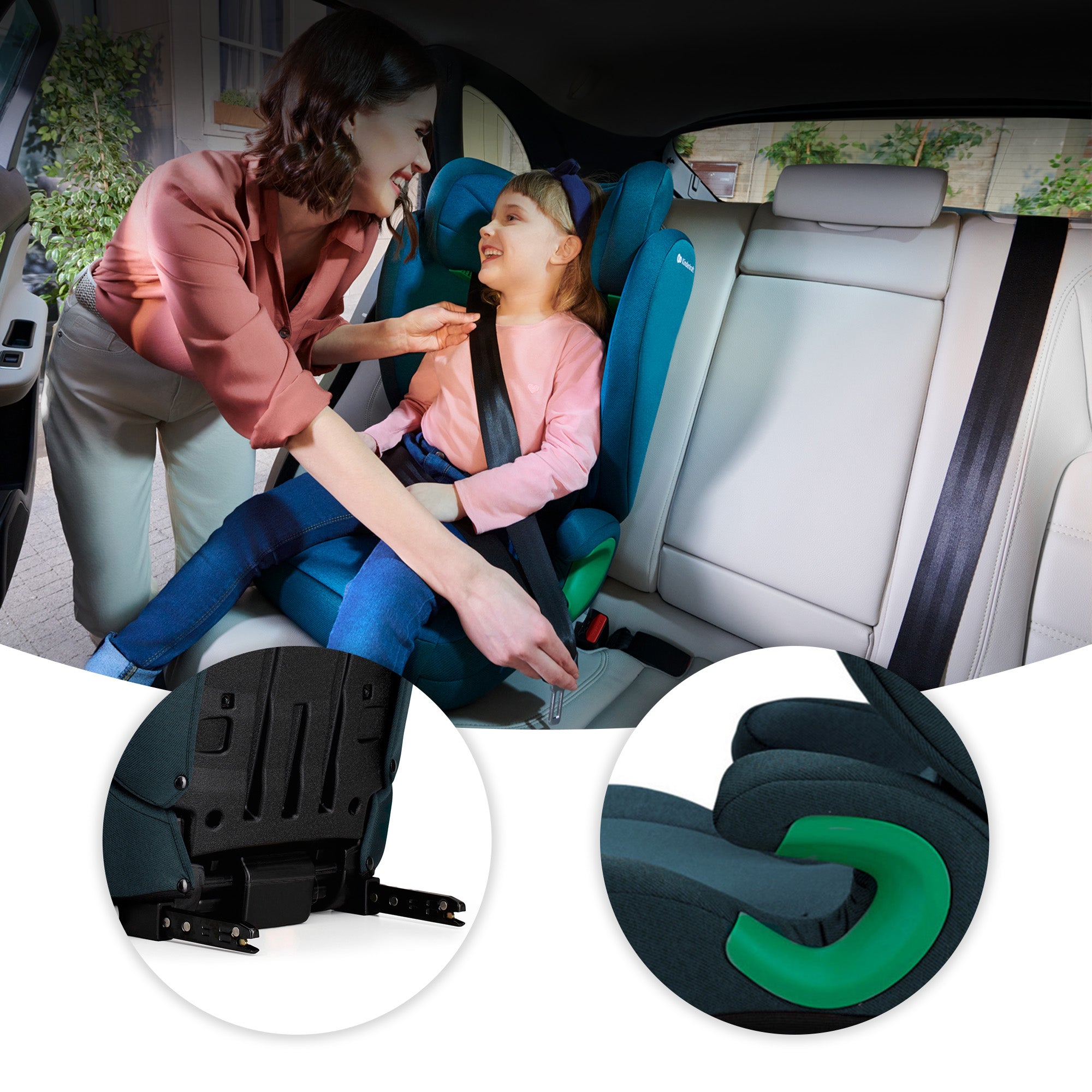 - ISOFIX sistema su indikatoriais: Greitas, paprastas ir patikimas tvirtinimas, garantuojantis teisingą montavimą.