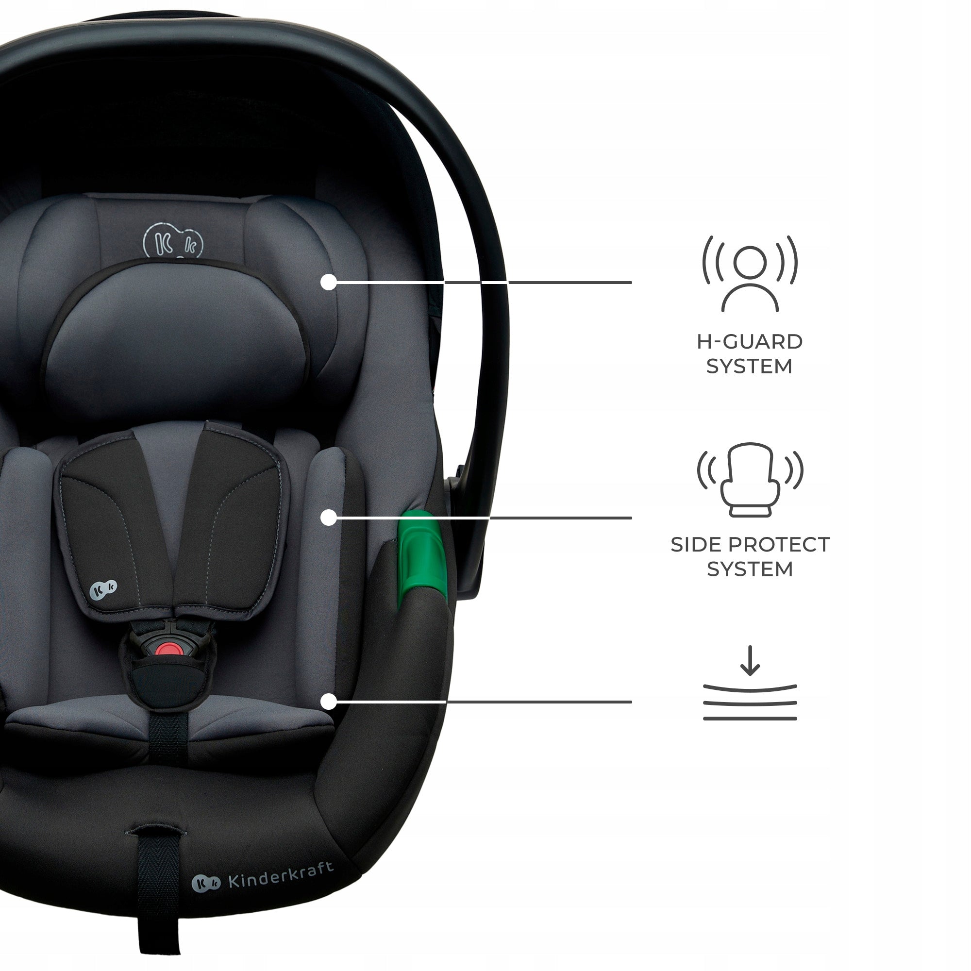 Šis produktas apima Kinderkraft MINK PRO 2 i-Size automobilinę kėdutę su vidiniu įdėklu naujagimiui ir reguliuojamu stogeliu. Kiti priedai, pavyzdžiui, bazė, parduodami atskirai.