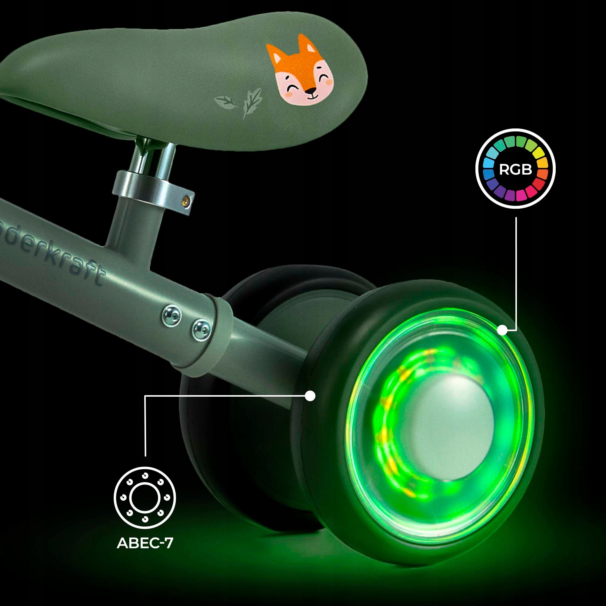 Kinderkraft Balansinis dviratukas CUTIE FLASH su keturiais šviečiančiais ratais, žalias
