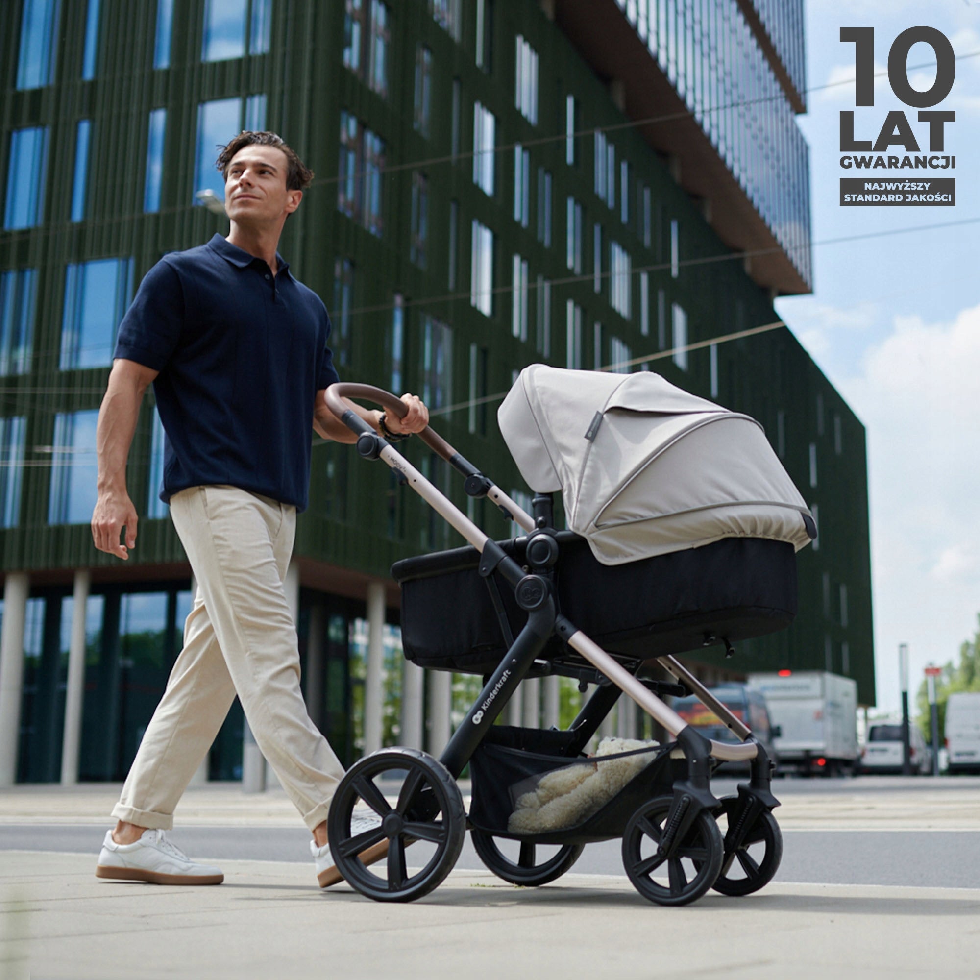Kinderkraft MOOV 2 3in1 yra universalus sprendimas, sukurtas nuo pat pirmųjų jūsų vaiko dienų iki maždaug 4 metų (iki 27 kg). Šis daugiafunkcinis vežimėlis lengvai prisitaiko prie augančio vaiko poreikių, siūlydamas neprilygstamą patogumą ir funkcionalumą. Nuo erdviausios lopšio funkcijos naujagimiui, kuri vėliau transformuojama į patogią sportinę dalį, iki saugios kelioninės sistemos su itin lengva automobiline kėdute MINK PRO i-Size – MOOV 2 užtikrina sklandžius ir džiugius pasivaikščiojimus visomis progomis. Jo modernus dizainas ir aukštos kokybės medžiagos garantuoja ilgaamžiškumą ir stilių.