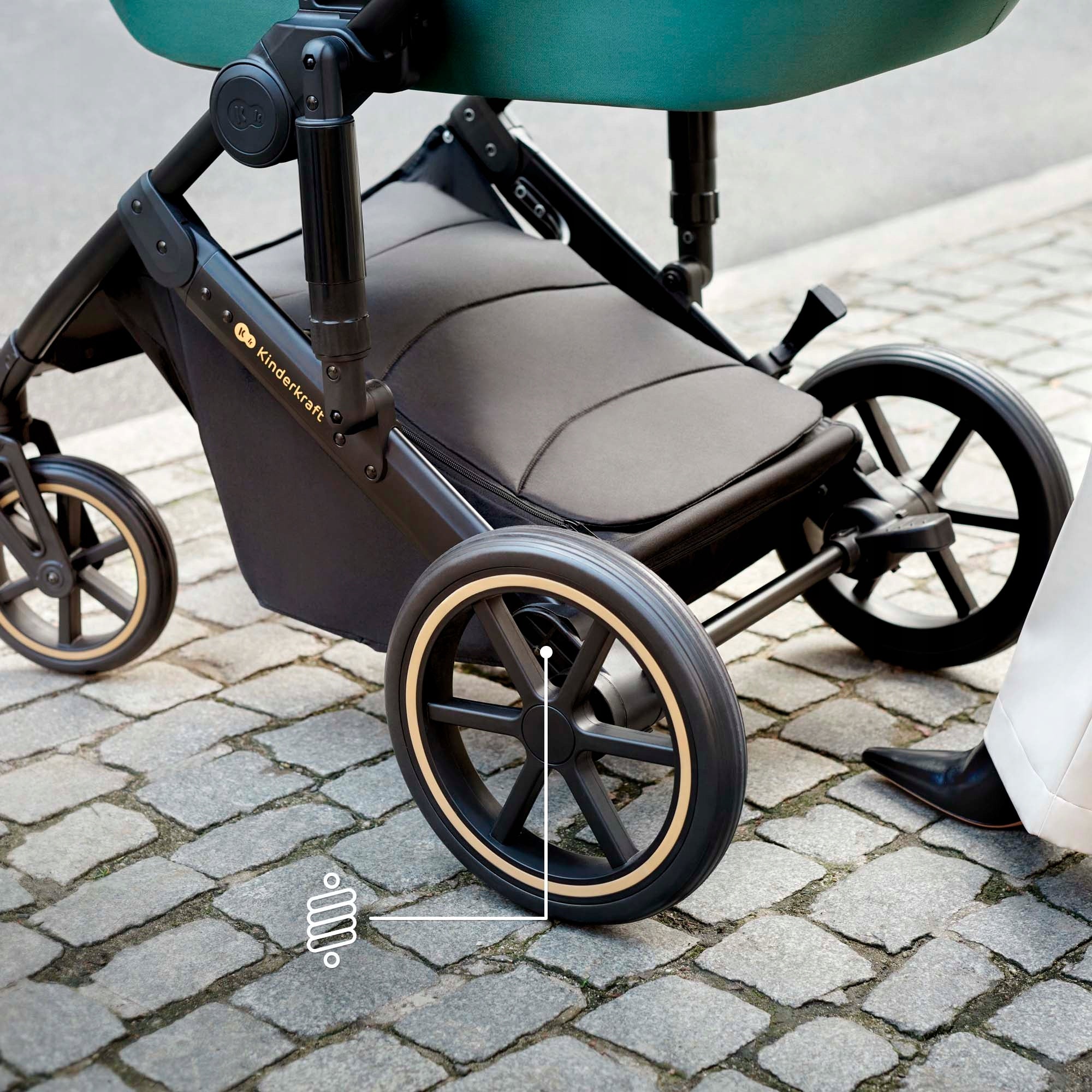 Šis multifunkcinis vežimėlis sukurtas taip, kad atitiktų visus jūsų ir jūsų vaiko poreikius. Amortizuojantys ratai ir visas rėmas užtikrina sklandžią kelionę net nelygiais paviršiais, nuo miesto šaligatvių iki miško takelių. Dėl didelių, nepradūriamų ratų nereikės rūpintis jų pripūtimu. Galimybė tvirtinti automobilinę kėdutę ant vežimėlio rėmo leis jums patogiai perkelti miegantį kūdikį iš automobilio į vežimėlį, neatidarant jo ir netrukdant jo miego. Tai itin patogu vykstant į trumpas keliones ar apsilankymus pas artimuosius.