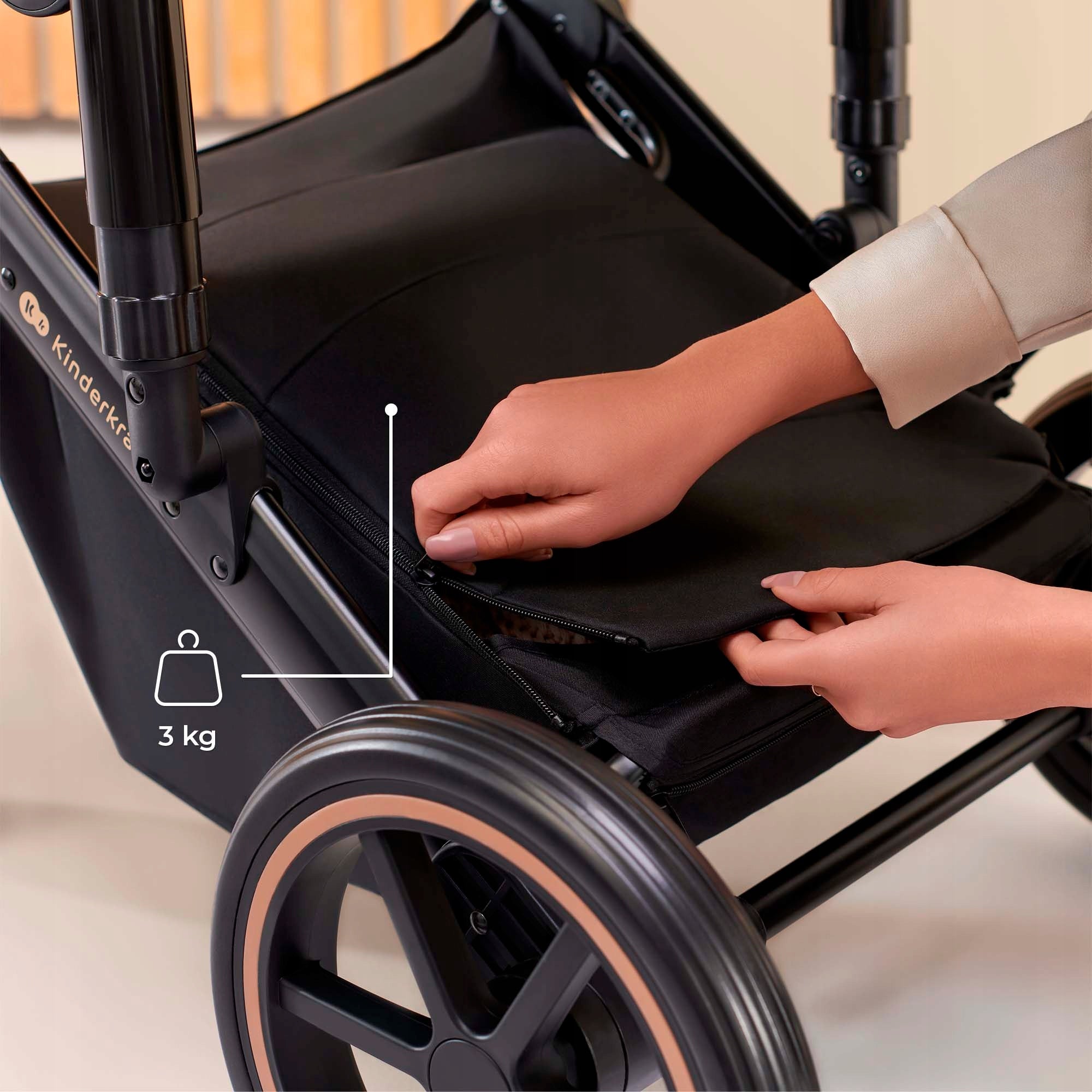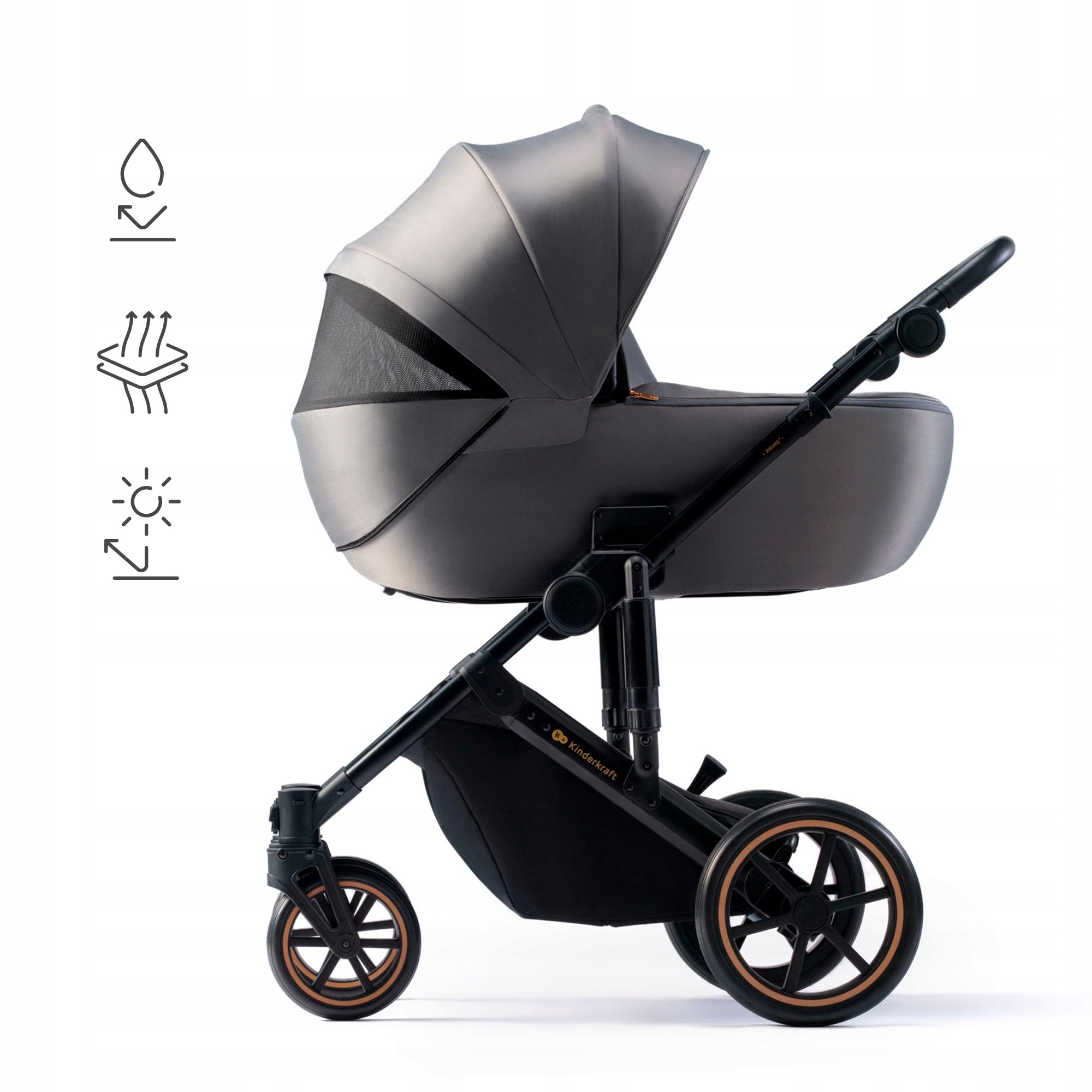 Šis vežimėlis sukurtas atsižvelgiant į tėvų patogumą ir vaiko saugumą. Didelis, vandeniui atsparus gaubtas su UPF50+ filtru apsaugo nuo žalingų UV spindulių ir lietaus, o specialus langelis leidžia nuolat stebėti savo atžalą. Reguliuojama rankena tėvams užtikrina, kad vežimėlį bus patogu stumdyti nepriklausomai nuo tėvų ūgio. Sportinės dalies penkių taškų saugos diržai su paminkštinimais užtikrina vaiko stabilumą ir saugumą sėdint. Talpus, užsegamas krepšys po vežimėliu yra puikus sprendimas nešiotis viską, ko gali prireikti pasivaikščiojimo metu – nuo pirkinių iki žaislų. Naudodami komplekte esančius adapterius, galėsite lengvai pritvirtinti suderinamas automobilines kėdutes (pvz., Kinderkraft eg:, Kiddy eg:, Maxi Cosi eg:, Cybex eg:, BeSafe eg:, Nuna eg:), sukurdami patogią kelionės sistemą.