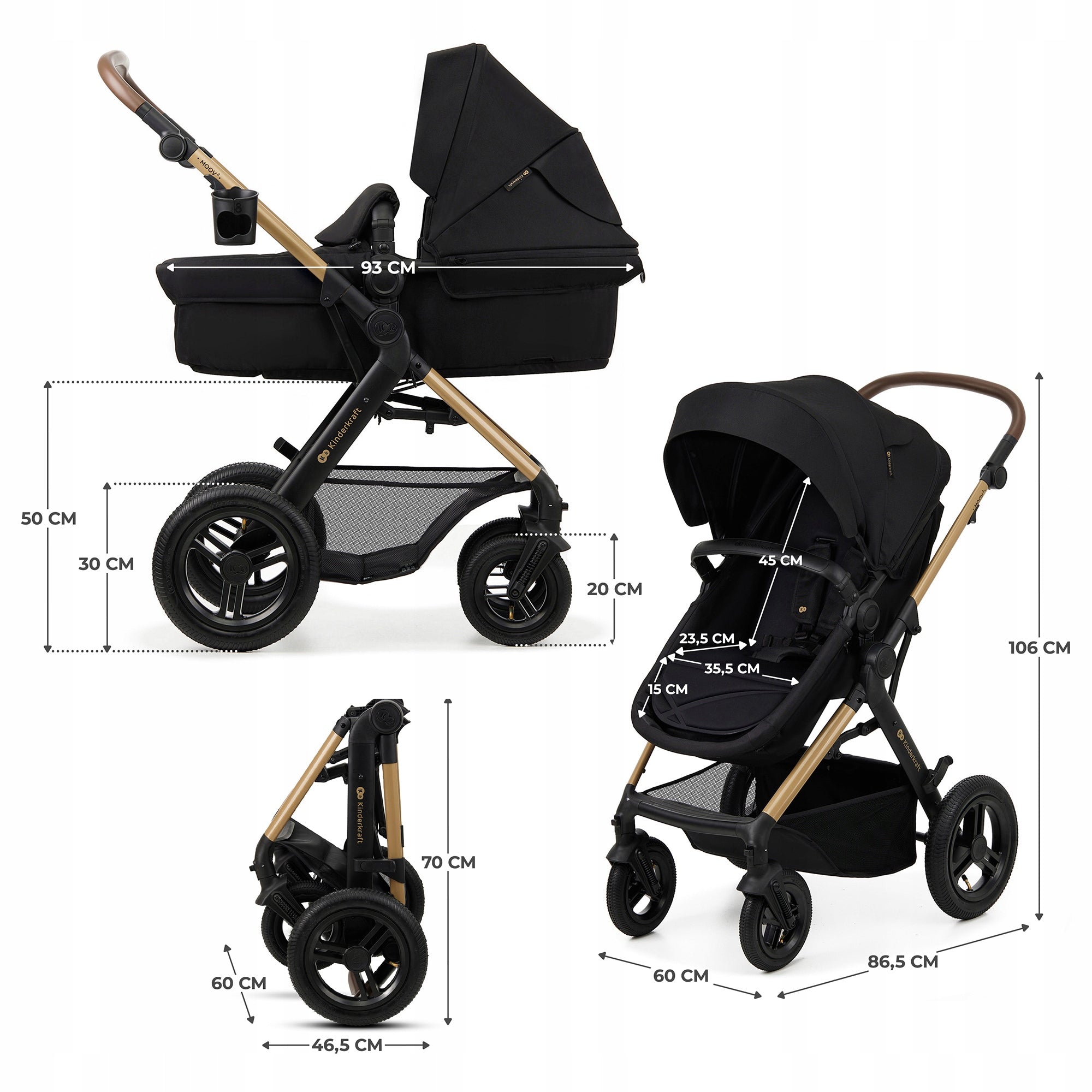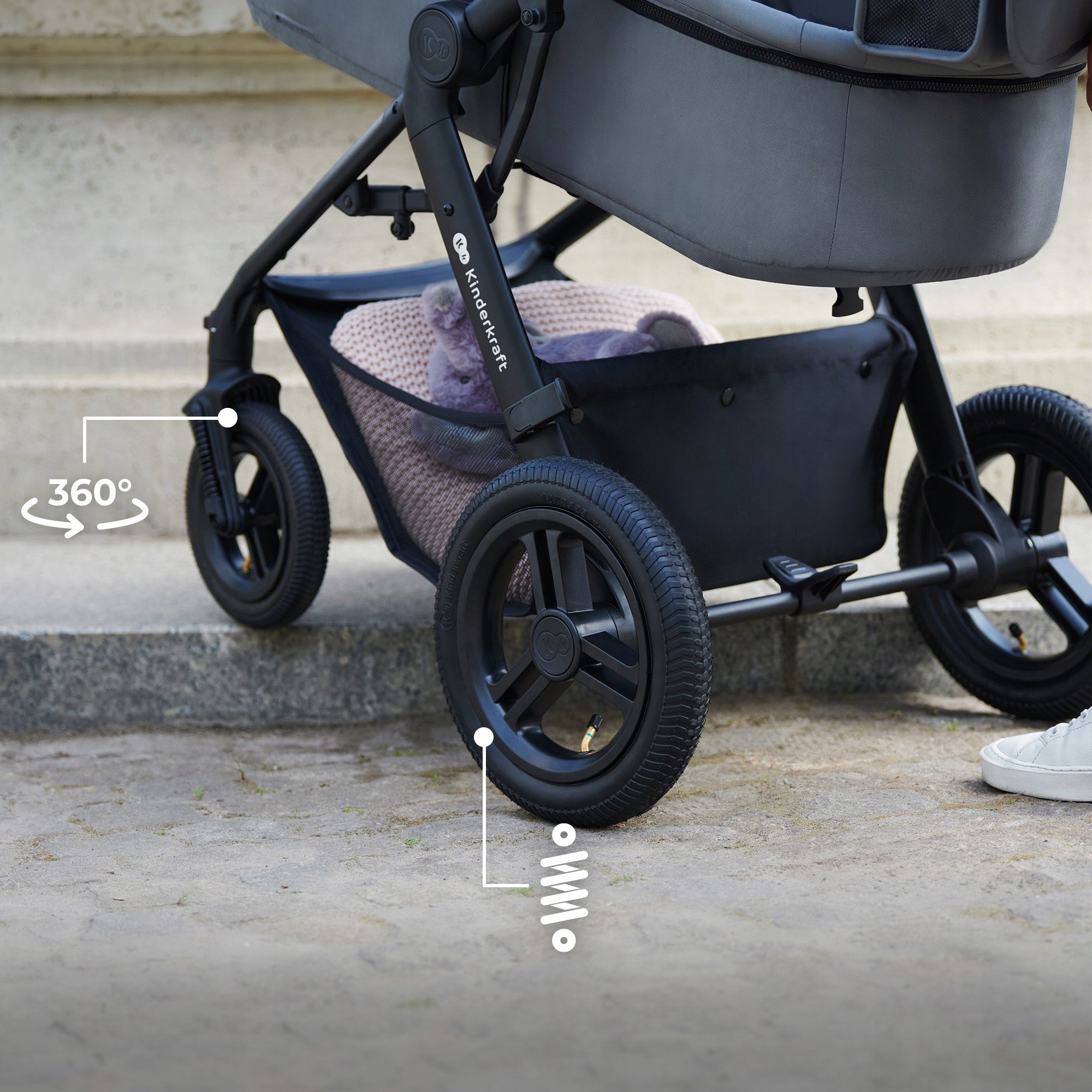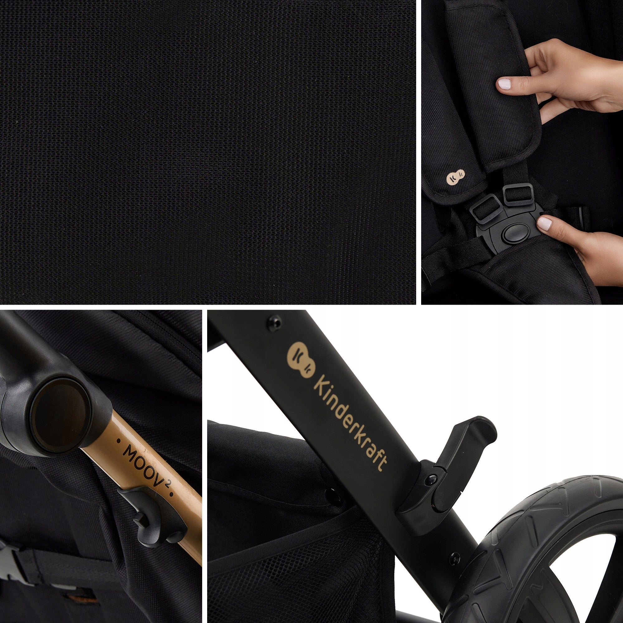 Susipažinkite su Kinderkraft MOOV 2 AIR – universaliu 3in1 vežimėliu, sukurtu palengvinti jūsų kasdienybę nuo pat pirmųjų vaiko gyvenimo dienų iki maždaug 4-5 metų amžiaus (iki 27 kg bendros apkrovos). Šis elegantiškas ir funkcionalus vežimėlis auga kartu su jūsų vaiku, siūlydamas sprendimus visoms kelionėms – nuo trumpų pasivaikščiojimų parke iki ilgų kelionių automobiliu. Dėl itin didelių, pripučiamų ir amortizuojančių ratų, MOOV 2 AIR užtikrina sklandų važiavimą bet kokioje trasoje, o transformuojama sėdynė bei komplekte esantis saugus automobilio kėdutė MINK PRO i-Size leis jums mėgautis kiekviena akimirka kartu be rūpesčių.