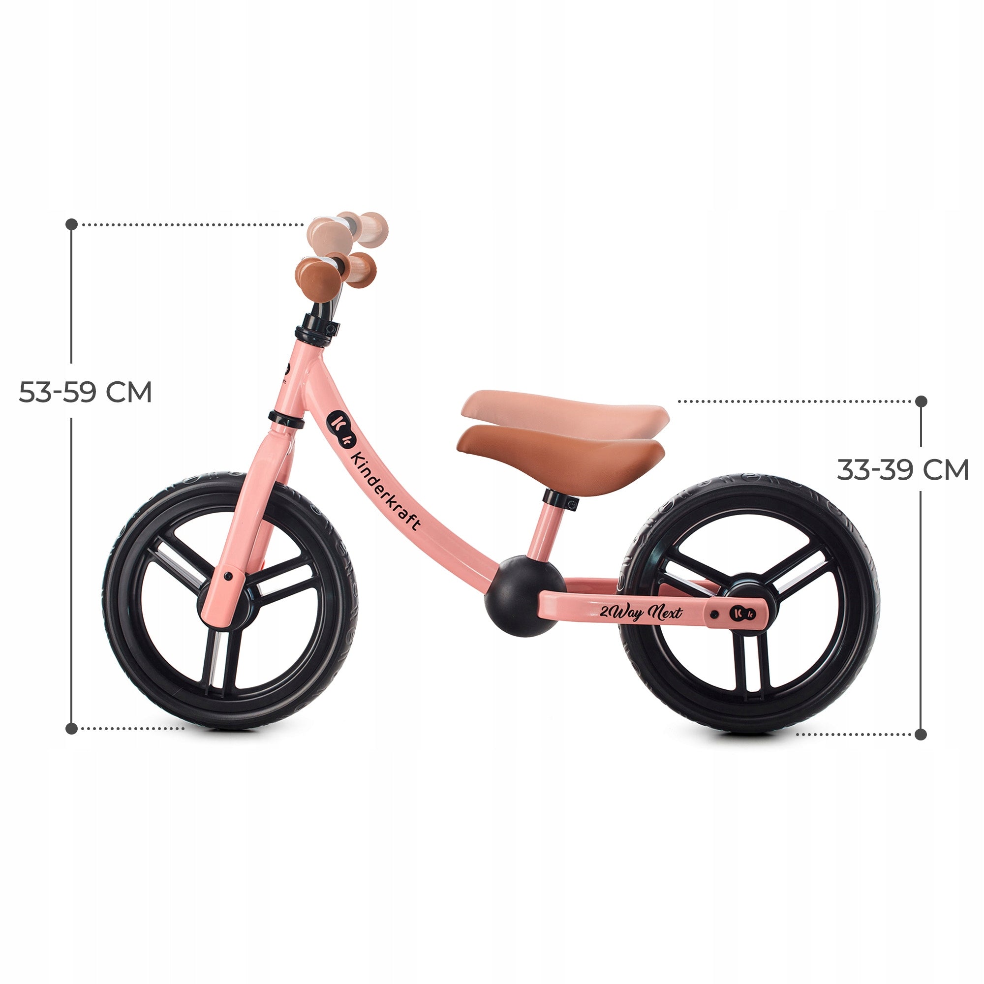 Kinderkraft 2WAY NEXT – tai lengvas ir patvarus balansinis dviratukas, sukurtas mažiesiems nuo 2-jų metų. Jis ne tik suteikia begales džiaugsmo, bet ir padeda lavinti svarbiausius motorinius įgūdžius, tokius kaip pusiausvyra ir koordinacija, ruošiantis pereiti prie tradicinio dviračio. Ergonomiška, žemai esanti rėmo konstrukcija ir reguliuojamas vairas bei sėdynė užtikrina, kad dviratukas augtų kartu su vaiku, o tvirtos, nepraduriamomis putomis užpildytos padangos leis mėgautis važiavimu bet kokiu paviršiumi. Stilingas dizainas ir ryški rožinė spalva padarys šį dviratuką nepakeičiamu vaiko palydovu.