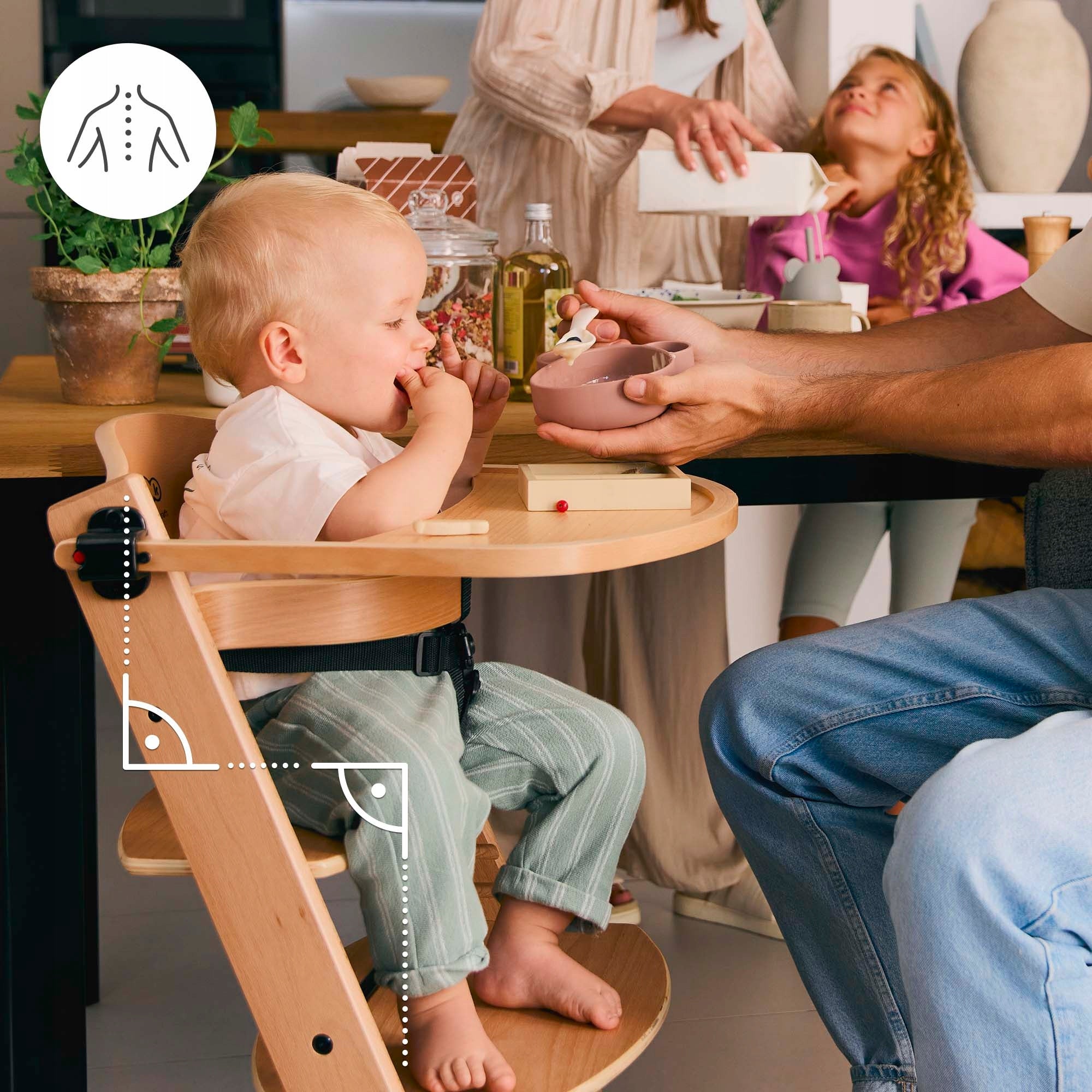 Pasirinkdami ENOCK kėdutę, suteikiate savo vaikui tvirtą pagrindą sveikai raidai. Ergonomiška dizaino koncepcija, kuria remiasi šios kėdutės kūrimas, padeda formuoti taisyklingą laikyseną. Taisyklingas 90 laipsnių kampas keliuose ir klubuose, tiesus stuburas – tai aspektai, skatinantys sveikus mitybos įpročius ir taisyklingą fizinę raidą nuo pat mažens. Reguliuojami saugos dirželiai užtikrina, kad vaikas bus saugiai pritvirtintas, o nuimamas padėklas leidžia lengvai palaikyti švarą. Ši kėdutė yra kruopščiai suprojektuota, kad tarnautų ilgai ir patikimai.