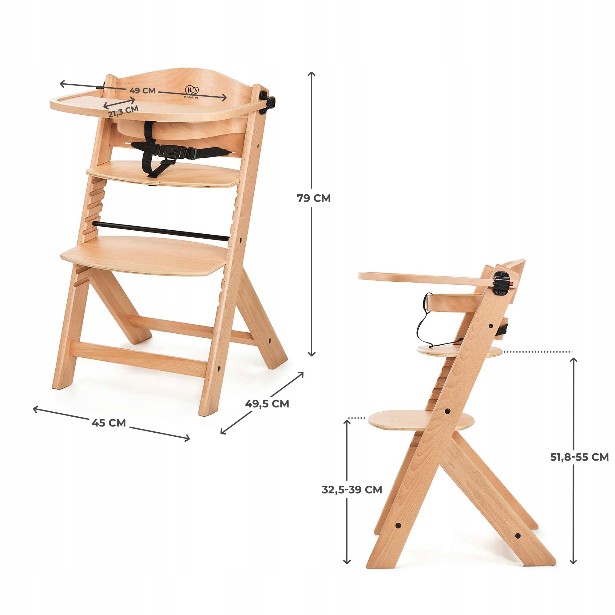 Kinderkraft ENOCK medinė kėdutė maitinimui yra ne tik stilingas, bet ir nepaprastai funkcionalus baldas jūsų namuose. Sukurta atsižvelgiant į vaiko vystymosi etapus, ji auga kartu su jūsų mažyliu nuo maždaug 6 mėnesių iki paauglystės (iki 35 kg). Kėdutė užtikrina taisyklingą vaiko kūno padėtį maitinimo ir kitų veiklų metu, palaikydama sveiką stuburo vystymąsi. Dėl reguliuojamo atlošo, sėdimosios dalies ir, svarbiausia, atramos pėdoms, visada galėsite pritaikyti kėdutę pagal vaiko ūgį ir poreikius, užtikrinant maksimalų komfortą ir saugumą.