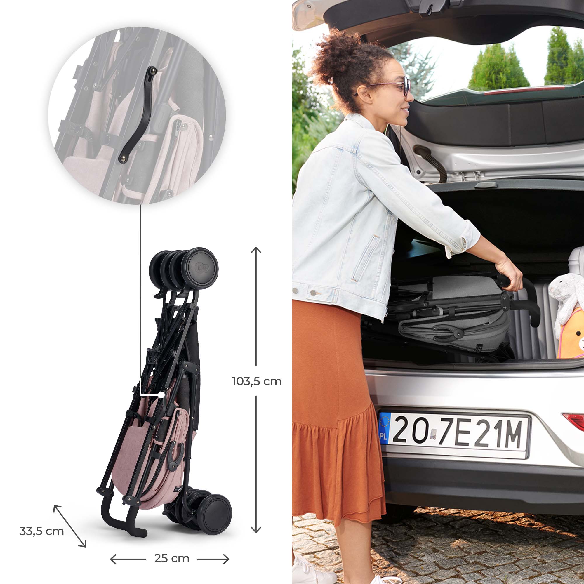 Kinderkraft SIESTA vežimėlis yra idealus pasirinkimas aktyvioms šeimoms, kurios vertina patogumą ir mobilumą. Jo "skėtuko" tipo sulankstymo sistema leidžia vežimėlį greitai paruošti kelionei arba sutalpinti jį itin kompaktiškai (103x41x26 cm). Dėl mažo svorio ir rankenos ant rėmo, jį patogu nešti net ir viena ranka. Šis vežimėlis sukurtas atitikti šiuolaikinių tėvų poreikius, siūlydamas lengvumą ir paprastumą naudojant tiek mieste, tiek keliaujant.