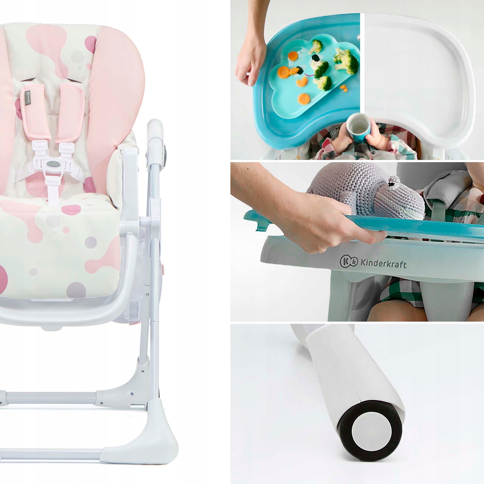 Kinderkraft Sulankstoma maitinimo kėdutė vaikams su ratukais YUMMY Rožinė