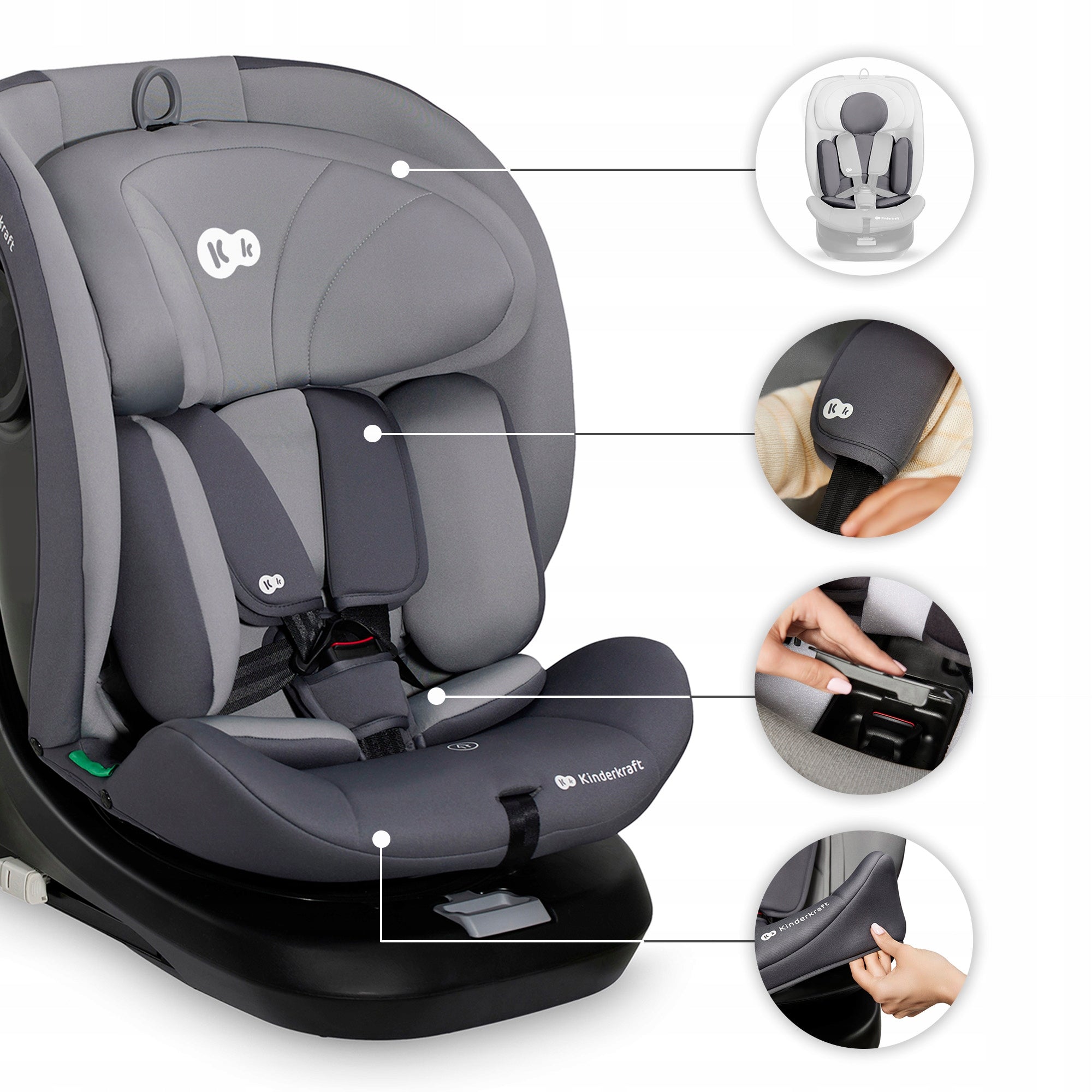 Sukurta augti kartu su jūsų vaiku, Kinderkraft I-GROW i-Size automobilinė kėdutė yra nepakeičiamas palydovas kelionėse nuo pirmųjų gyvenimo dienų iki maždaug 12 metų. Atitinkanti naujausius R129 i-Size standartus, ši kėdutė užtikrina maksimalų saugumą, leisdama vaiką vežti atbulai (RWF) iki 4 metų amžiaus – tai net 5 kartus saugesnis pasirinkimas esant priekiniams susidūrimams. Išskirtinis jos bruožas – 360° besisukanti sistema EASY SPIN, palengvinanti vaiko įsodinimą ir išlaipinimą bei leidžianti greitai pakeisti kėdutės kryptį be papildomo montavimo.