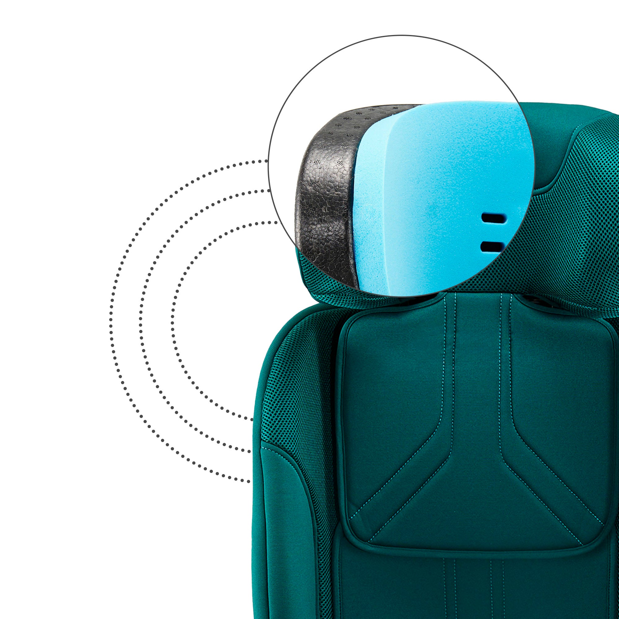 Saugumą užtikrina pažangios technologijos, tokios kaip SPS+ (Side Protection System Plus) su papildomu buferiu, kuris sugeria pirmąjį smūgio jėgą šoninių susidūrimų metu, efektyviai išsklaidydamas energiją. Tai apsaugo vaiką nuo netikėtų smūgių. H-GUARD+ galvos atrama, turinti daugiasluoksnę konstrukciją ir paminkštinimą iš memory foam medžiagos, suteikia dvigubą apsaugą: užtikrina puikų prigludimą ir komfortą, kartu veikia kaip amortizatorius, sugeriantis smūgio energiją. Visa tai kartu su EPP putplasčio konstrukcija, puikiai sugeriančia smūgio energiją, garantuoja aukščiausią saugumo lygį.