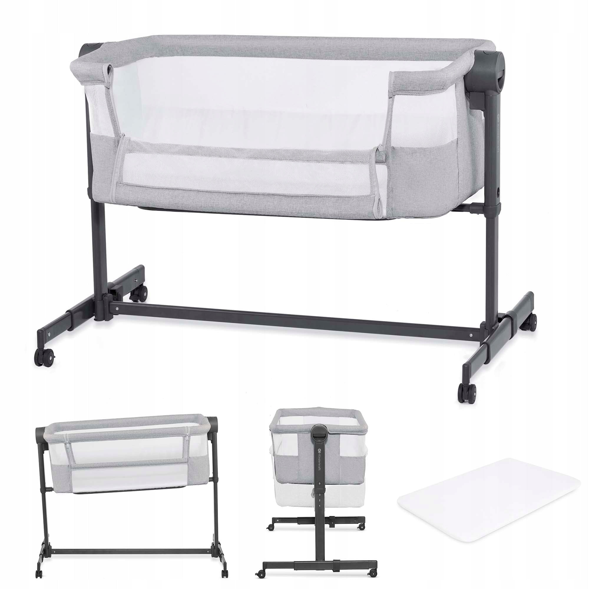 Kinderkraft vaikiškas kelioninis lopšys šalia lovos NESTEE UP 2 šviesiai pilkas