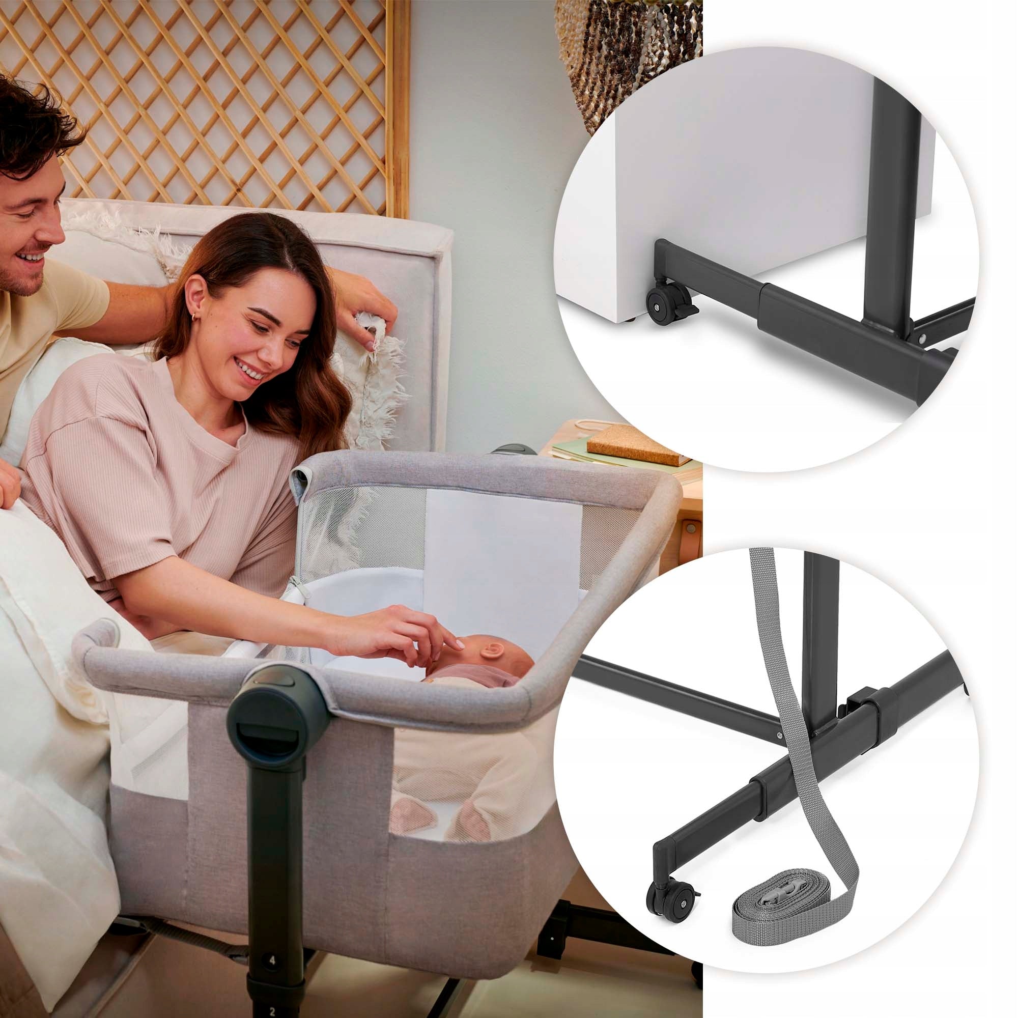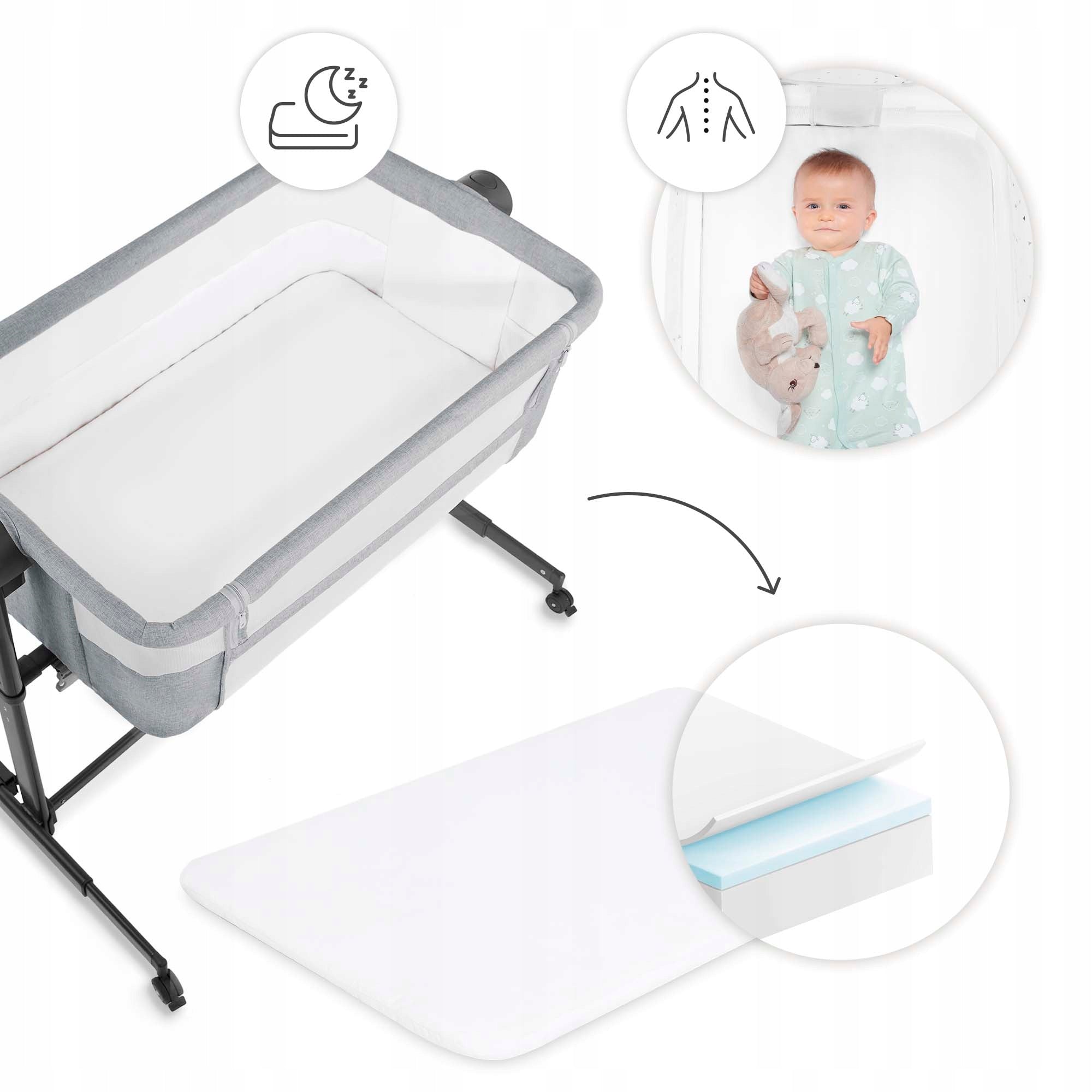 - Daugiafunkcionalumas: Veikia kaip lovytė prie tėvų lovos ir kaip atskiras lopšys/kelioninė lovytė.