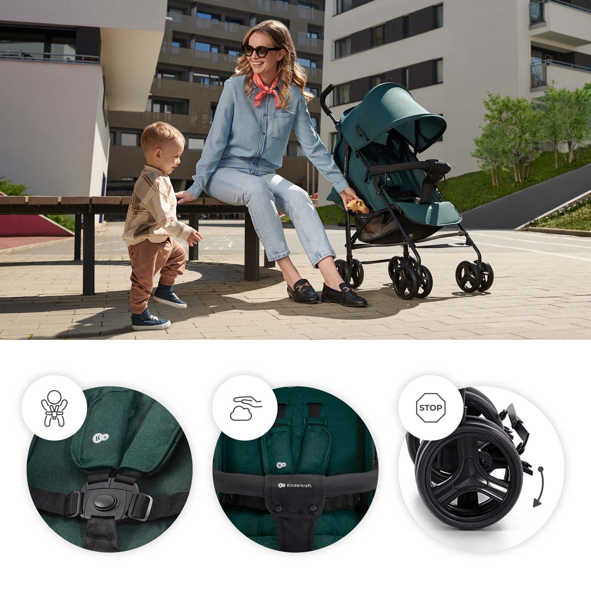 Kinderkraft Vežimėlis Skėtinis Lengvas Sulankstomas TIK Žalias