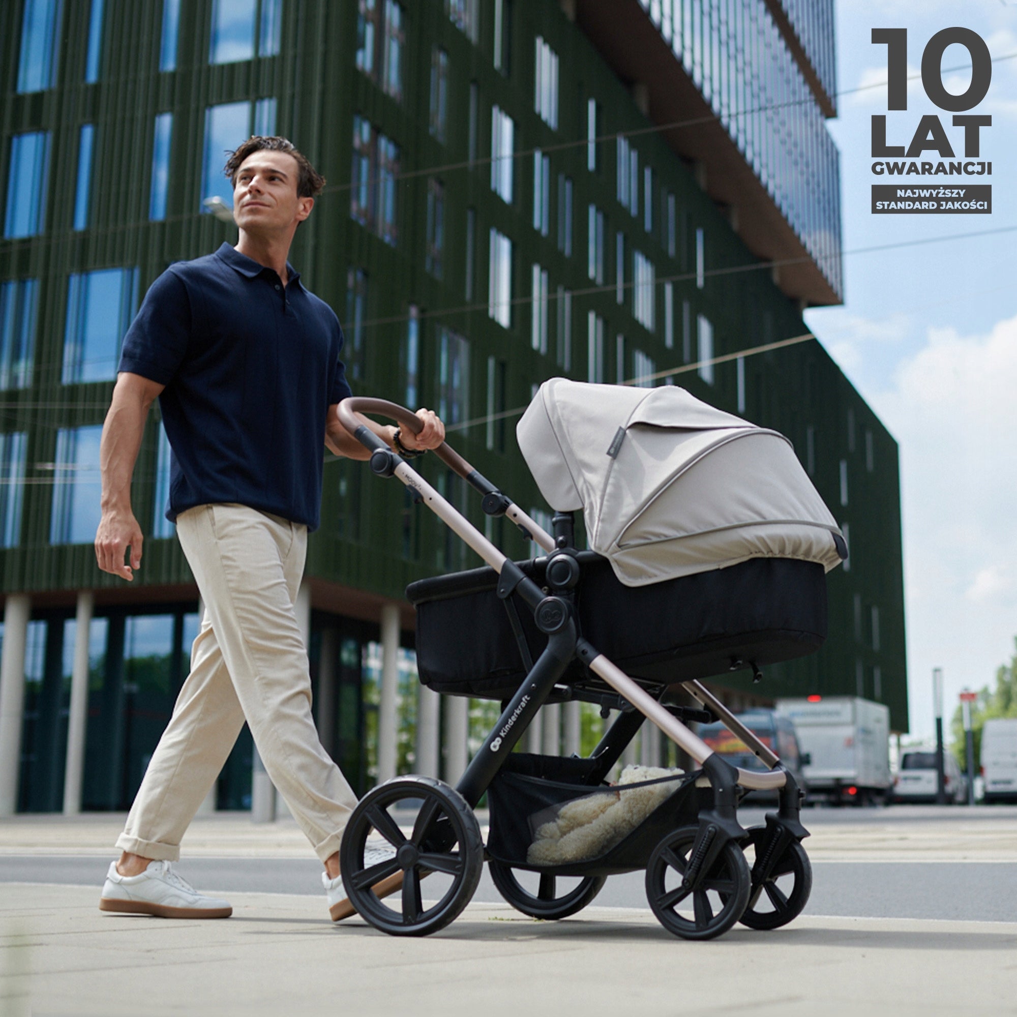 Paverskite kiekvieną išvyką su vaiku malonumu su "Kinderkraft MOOV 2 AIR" 4in1 kelionių sistema. Šis universalus vežimėlis, tinkantis nuo pat gimimo iki 27 kg svorio (vežimėlio rėmas iki 22 kg, krepšys iki 5 kg), sukurtas atsižvelgiant į šiuolaikinių tėvų poreikius – jis siūlo neprilygstamą funkcionalumą, patvarumą ir stilingą dizainą. "MOOV 2 AIR" yra ne tik vežimėlis, bet ir visapusiškas sprendimas, apimantis transformuojamą sėdimąją dalį, erdvią lopšio funkciją, didelius pripučiamus ratus ir pilną priedų komplektą, įskaitant saugią "MINK PRO I-SIZE" automobilinę kėdutę su "MINK FX" ISOFIX baze.