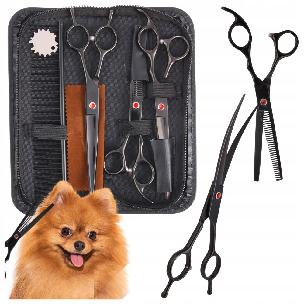 - Universalumas: Rinkinys apima skirtingus žirklių tipus (tiesias, lenktas, retintuvus) ir šukas, tinkamus įvairiems kirpimo stiliams ir augintinio poreikiams.
