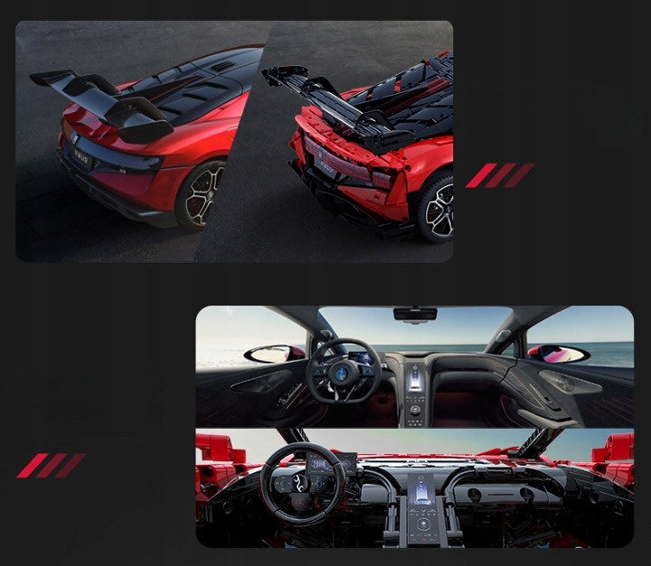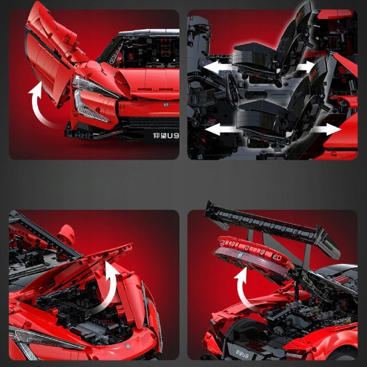 CaDA Yangwang U9 BYD modelis 1:8 masteliu yra tikras meno kūrinys konstruktorių pasaulyje. Kiekviena iš 3671 detalės kruopščiai suprojektuota, kad atkartotų tikrojo BYD Yangwang U9 sportinio automobilio aerodinamiką ir agresyvią išvaizdą. Detalus raudonas kėbulas, tikroviškos linijos ir net 60,5 cm ilgio modelis daro jį įspūdingu eksponatu bet kurioje lentynoje. Tai daugiau nei žaislas – tai galimybė turėti savo rankose aukščiausios klasės automobilio kopiją.