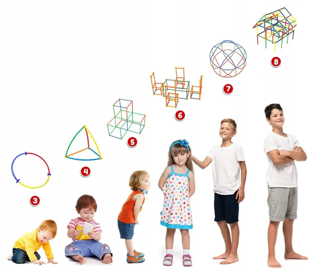 - Loginio mąstymo ir erdvinio suvokimo plėtotė: Vaikai mokosi planuoti, kaip sujungti detales, kad gautų norimą formą.