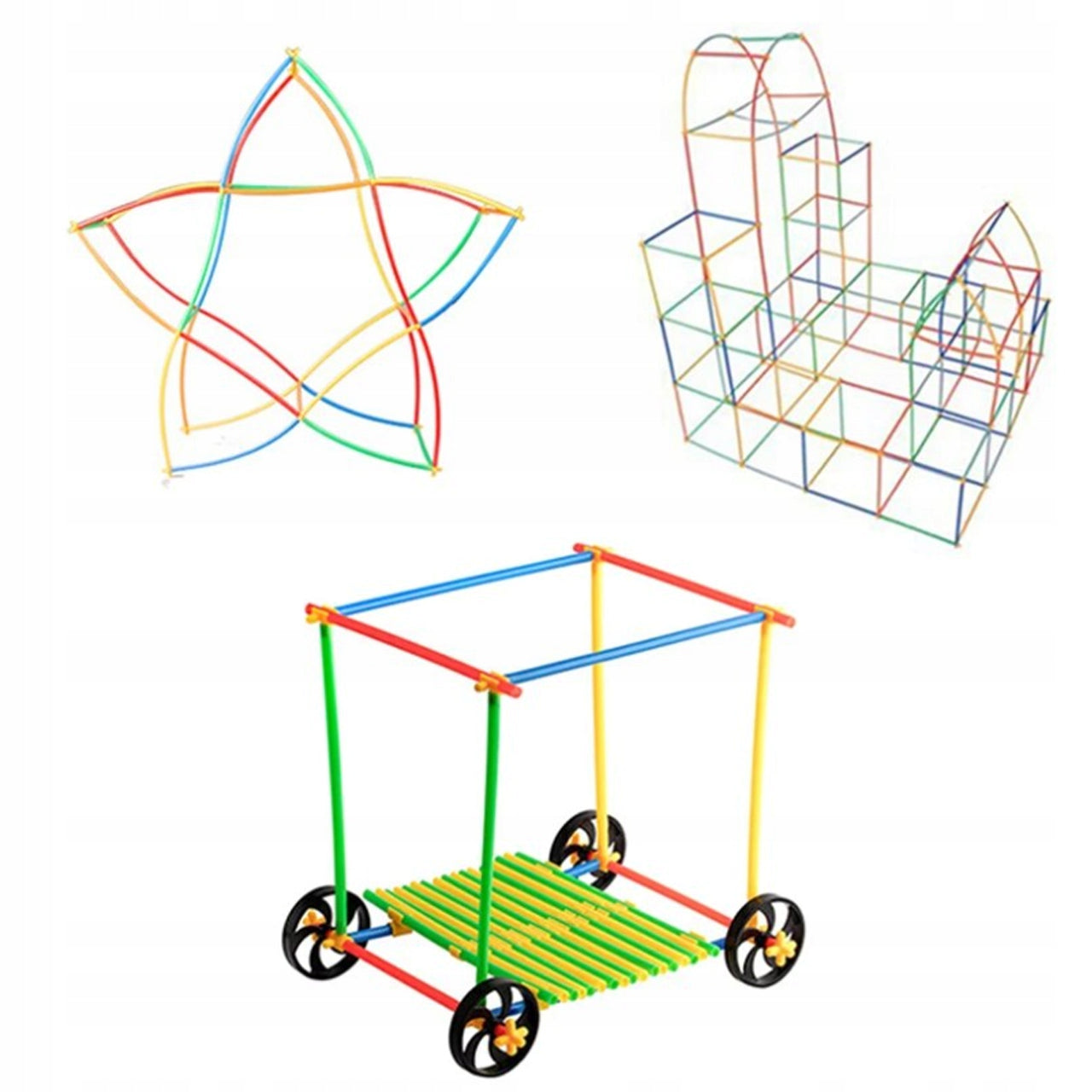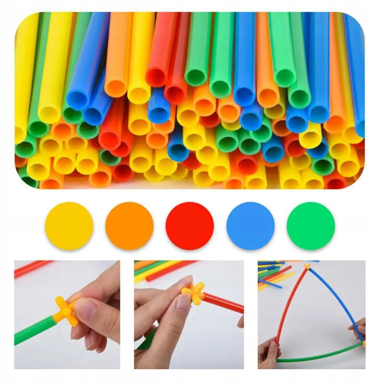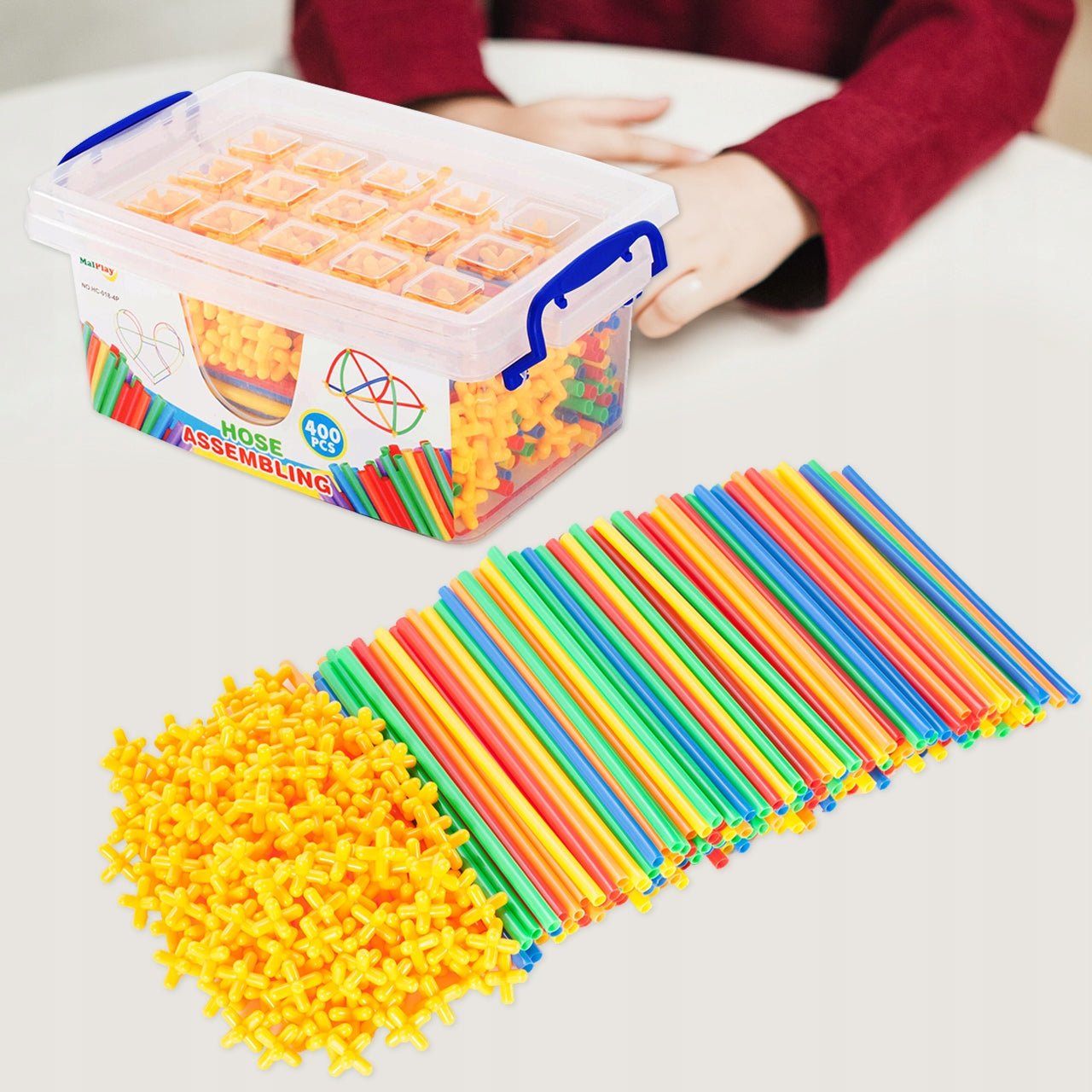 Konstrukcinės detalės "šiaudeliai" 400 vnt. rinkinys vaikams dėžutėje