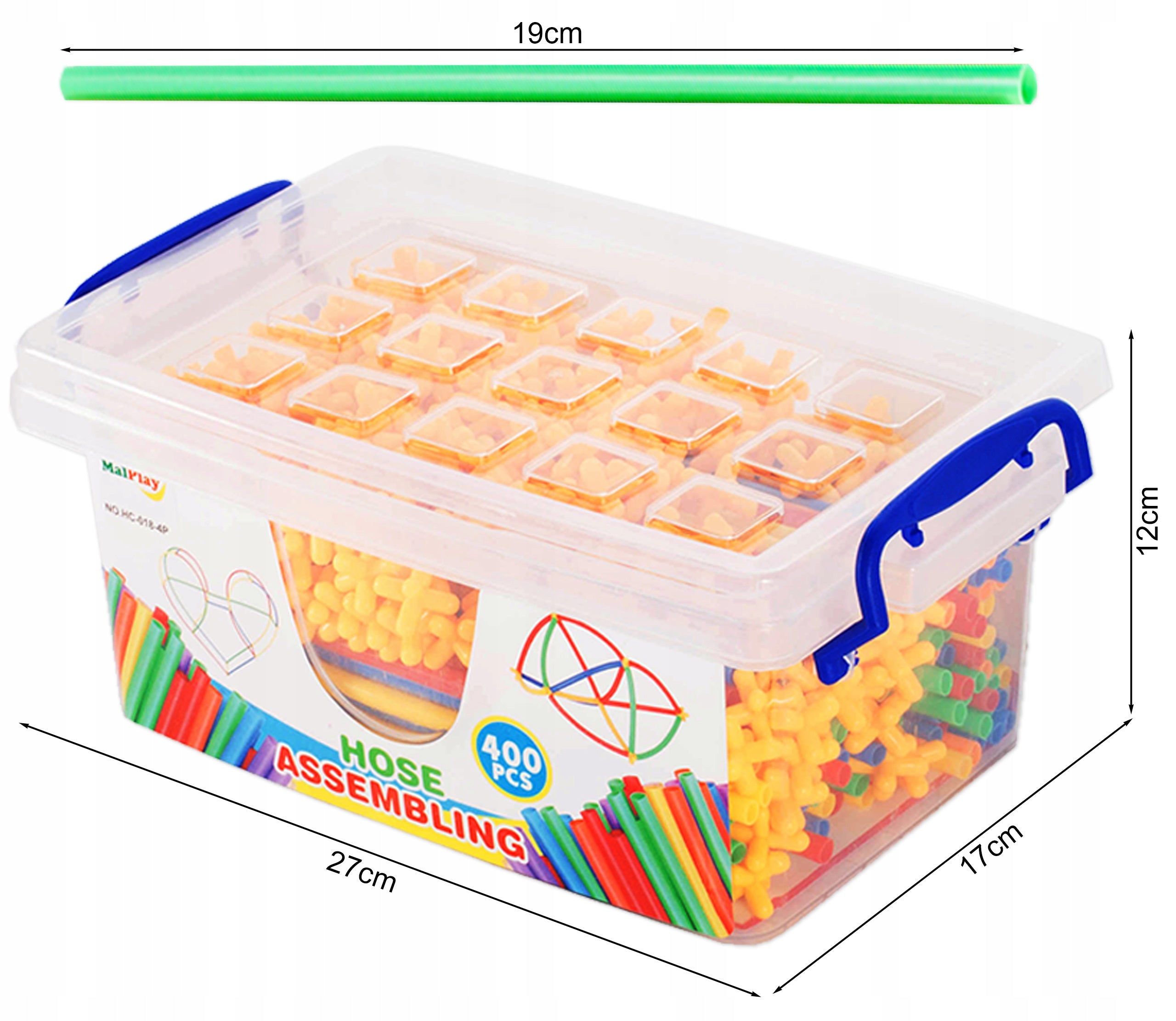 Su 400 detalių rinkiniu vaikų fantazijai nėra ribų! Šis rinkinys leidžia konstruoti ne tik paprastus objektus, tokius kaip apvalūs ratukai, kvadratai ar širdelės, bet ir sudėtingesnius statinius – jaukius namukus, patogius fotelius ar net visus miestus. Kiekvienas elementas skatina vaiką mąstyti apie erdvinę struktūrą ir proporcijas. Tai puiki priemonė ruošiantis ateičiai, lavinant tiek meninius, tiek techninius gebėjimus nuo pat mažens. Žaidimas su šiuo rinkiniu skatina kūrybiškumą, moko kantrybės ir atkaklumo siekiant užsibrėžto tikslo.