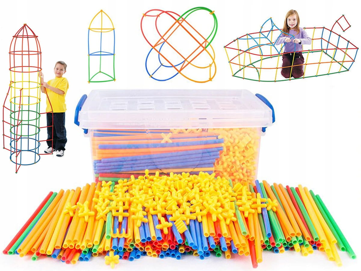 Konstrukciniai šiaudeliai/lazdelės, 700 elementų rinkinys vaikams, žaidimas, pramoga