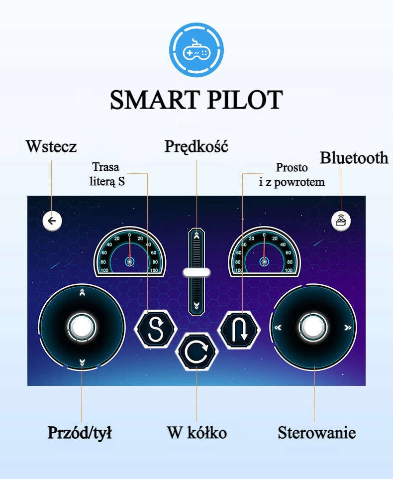 - Dvejopo režimo valdymas (pultelis ir Bluetooth programėlė) suteikia universalumo ir papildomų žaidimo galimybių.