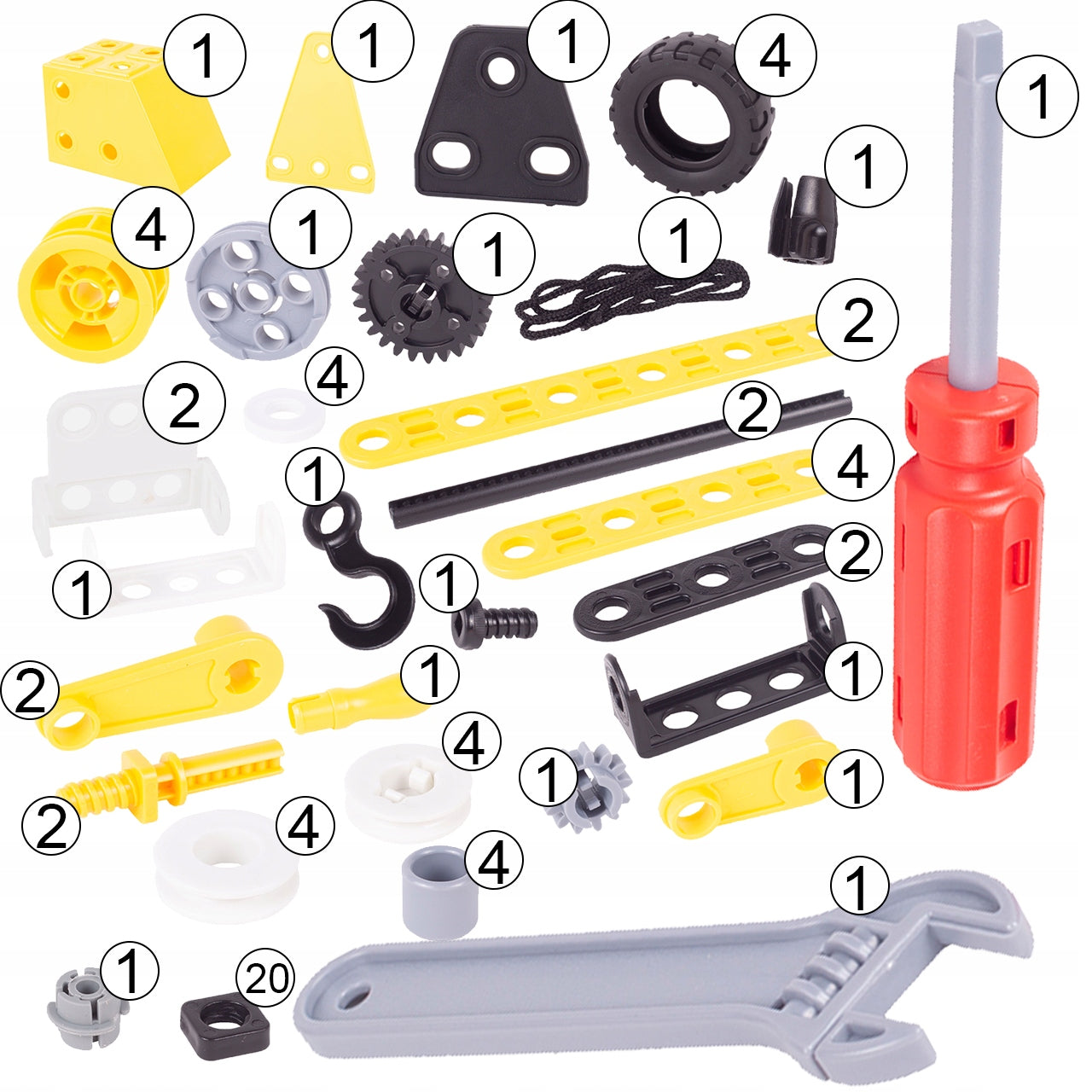 - Rinkinys leidžia vaikams patekti į mechanikos ir statybos pasaulį, lavinti vaizduotę bei motorinius įgūdžius.