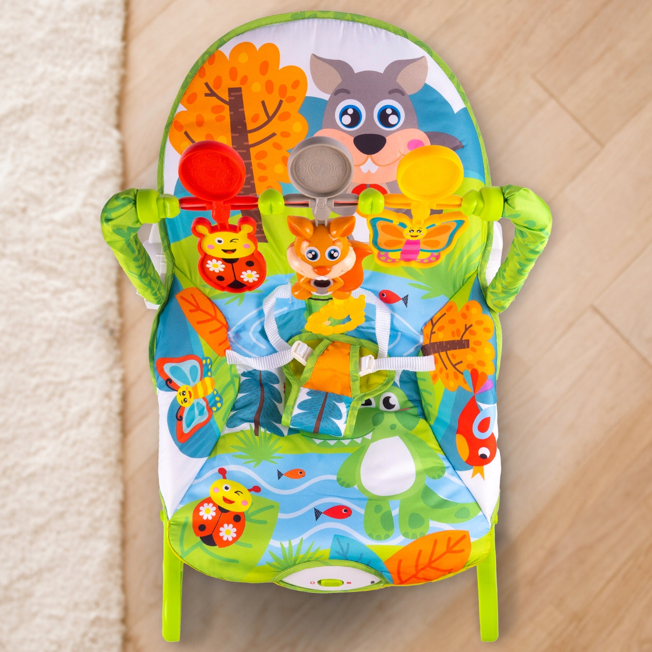Šis spalvingas, su mielais pasakų motyvais ir gyvūnėlių piešiniais papuoštas žalias lopšiukas-supuoklė sukurtas ne tik džiuginti akį, bet ir teikti maksimalų komfortą Jūsų kūdikiui. Jis idealiai tinka vaikams, kurių svoris siekia iki 18 kg, užtikrinant saugumą ir stabilumą. Sukurtas su apgalvota ergonomika, jis skatina natūralų vaiko vystymąsi ir suteikia ramybės jausmą, primenantį laiką, praleistą mamos įsčiose. Tai žinomas ir saugus judesys, padedantis nuraminti net ir išrankiausią mažylį.
