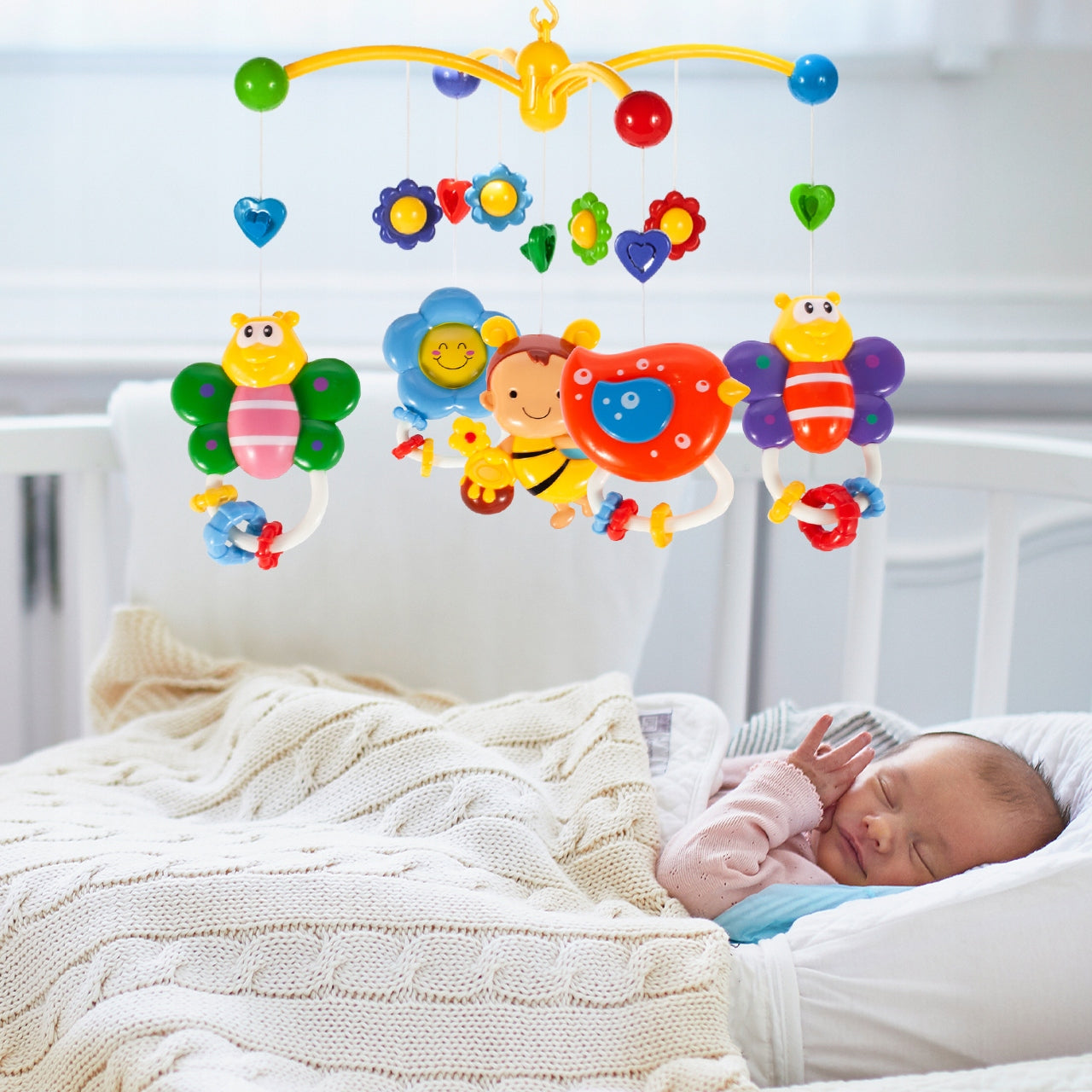 Spalvinga Kūdikio Karuselė Lėlytei su Bitutėmis ir Drugeliais – Jūsų Mažylio Pasaulio Praplėtimas