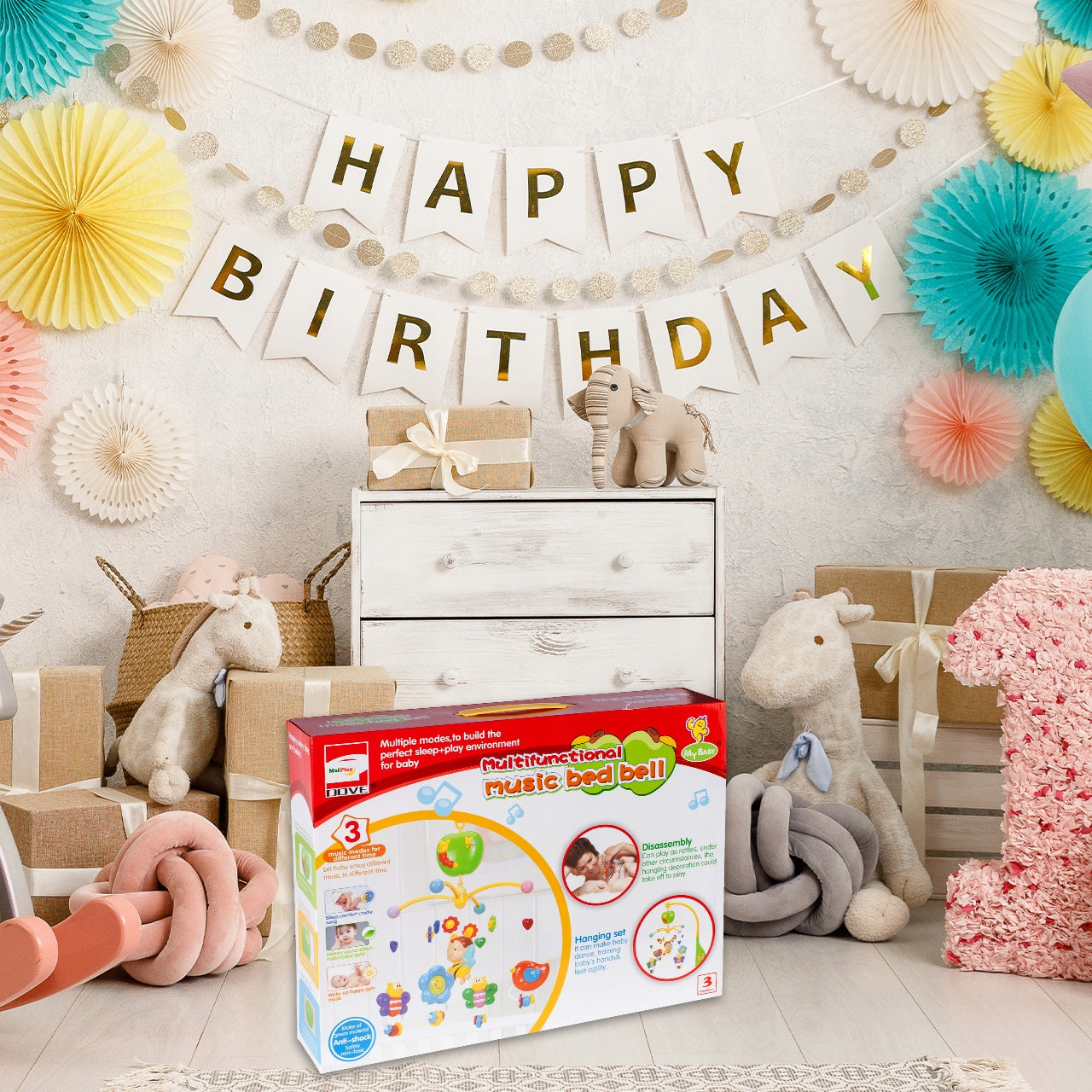 - Skatina kūdikio regos ir klausos vystymąsi.