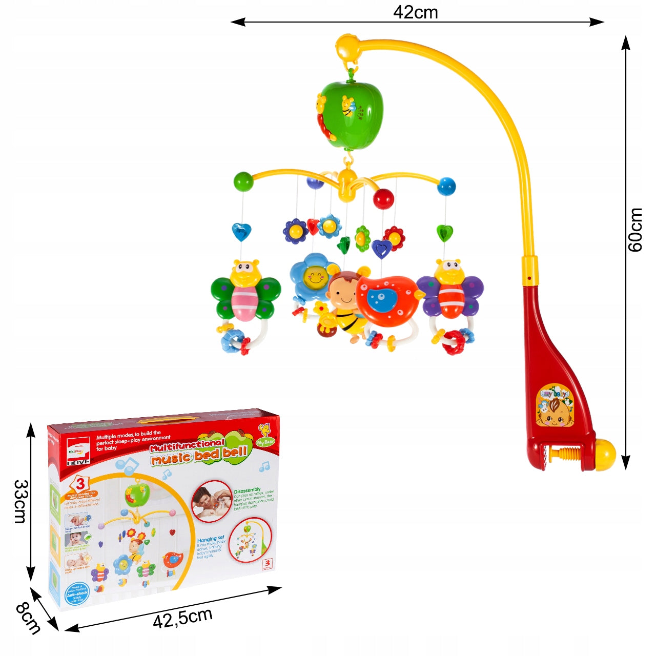 Mūsų karuselė su bitutėmis ir drugeliais – tai ne tik žaislas, bet ir vystymosi priemonė. Ji padeda kūdikiui lavinti spalvų atpažinimo įgūdžius, gebėjimą analizuoti vizualinius dirgiklius ir atsiminti bei atpažinti garsus. Dėl tinkamo elementų išdėstymo ir kampo, mažylis gali lengvai matyti visus besisukančius žaisliukus, kas skatina jo smalsumą ir norą tyrinėti aplinką. Tai puikus būdas pradėti pažintį su pasauliu per saugią ir malonią patirtį.