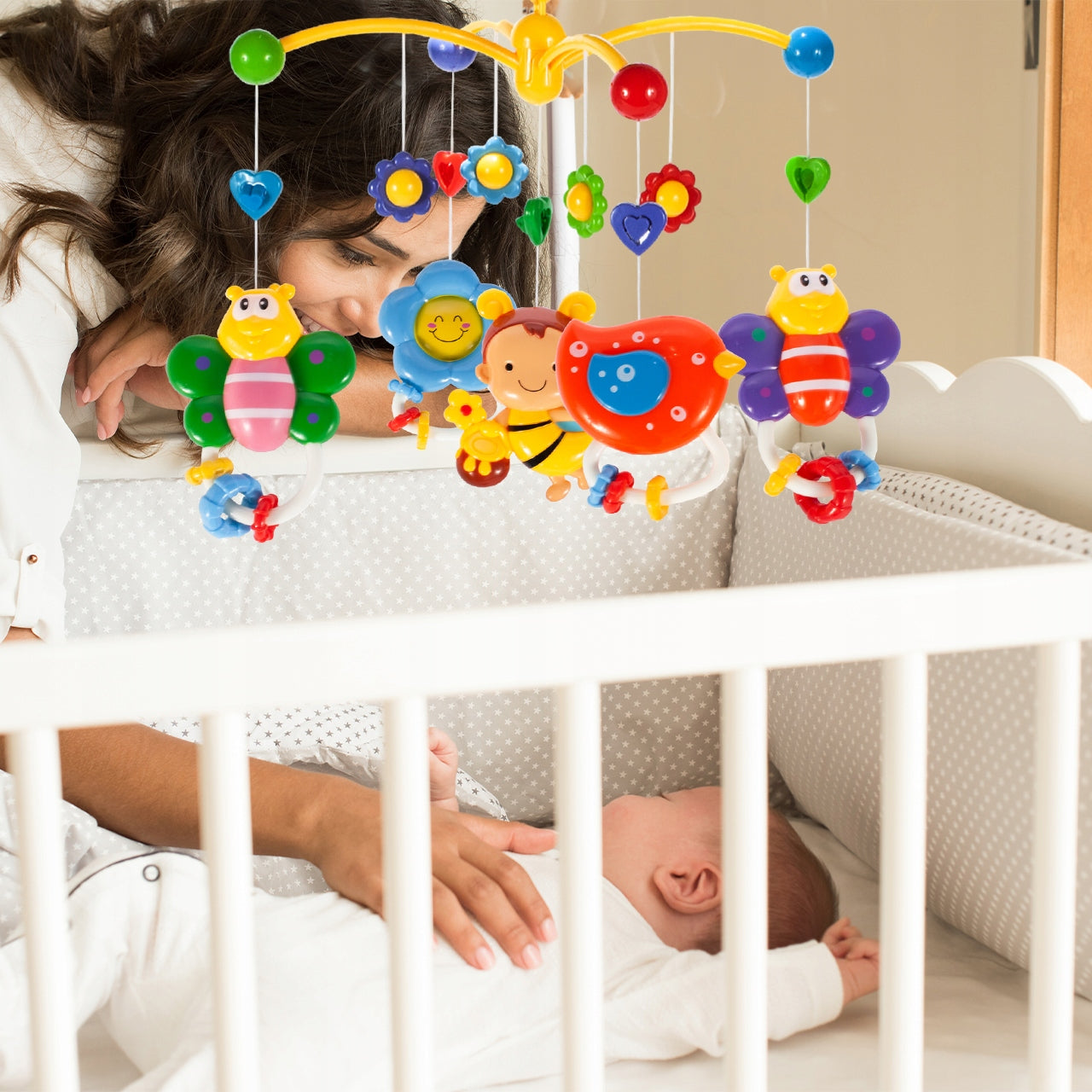 Sukurkite magišką aplinką savo kūdikiui su mūsų nuostabia karusele, papuošta žaviomis bitutėmis ir drugeliais. Ši karuselė ne tik puošia vaiko lovytę, bet ir tampa svarbiu vystymosi įrankiu. Ji skirta pritraukti mažylio dėmesį, skatinti regos koordinaciją ir suteikti raminantį efektą prieš miegą. Unikalus judesių ir švelnių melodijų derinys padeda sklandžiai pereiti nuo žaidimų prie poilsio, palaipsniui paruošiant vaikelį ramiam miegui. Ryškios spalvos ir judantys elementai stimuliuoja mažylio pojūčius, o tai yra ypač svarbu pirmaisiais gyvenimo mėnesiais.