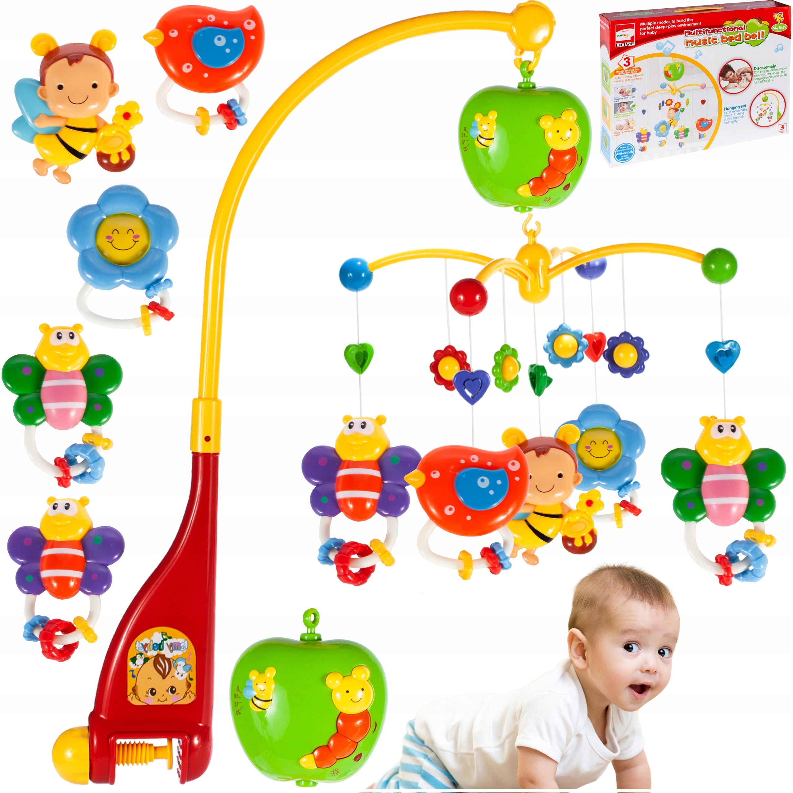 Mūsų karuselė yra suprojektuota atsižvelgiant į tėvų patogumą ir vaiko saugumą. Ji lengvai tvirtinama prie bet kurios vaiko lovytės, net ir kelioninių, dėka reguliuojamo tvirtinimo mechanizmo. Komplektacijoje rasite viską, ko reikia pilnavertei veiklai – nuo paties karuselės laikiklio iki muzikinės dėžutės su besisukančiu mechanizmu ir žavingų grojančių barškučių.