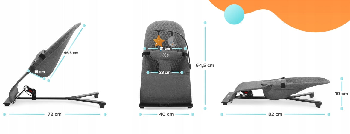 Vienas didžiausių MIMI sūpynėlių privalumų – tai jo lengvumas (tik 2,35 kg) ir kompaktiškumas. Jį itin lengva sulankstyti vos per kelias akimirkas, todėl jis puikiai tinka kelionėms. Nesvarbu, ar ruošiatės savaitgalio išvykai gamtoje, ar tiesiog lankote senelius, MIMI lengvai tilps į automobilio bagažinę ir visada bus šalia, suteikdamas jūsų kūdikiui pažįstamą ir saugų prieglobstį. Lopšelis turi 3 pakopų atlošo reguliavimo sistemą, kuri leidžia pritaikyti jo padėtį pagal vaiko poreikius. Nesvarbu, ar kūdikiui reikia patogios padėties žaidžiant, ar pusiau gulimos padėties ramiam poilsiui, MIMI lengvai prisitaikys. Tai užtikrina optimalų komfortą visą laiką.