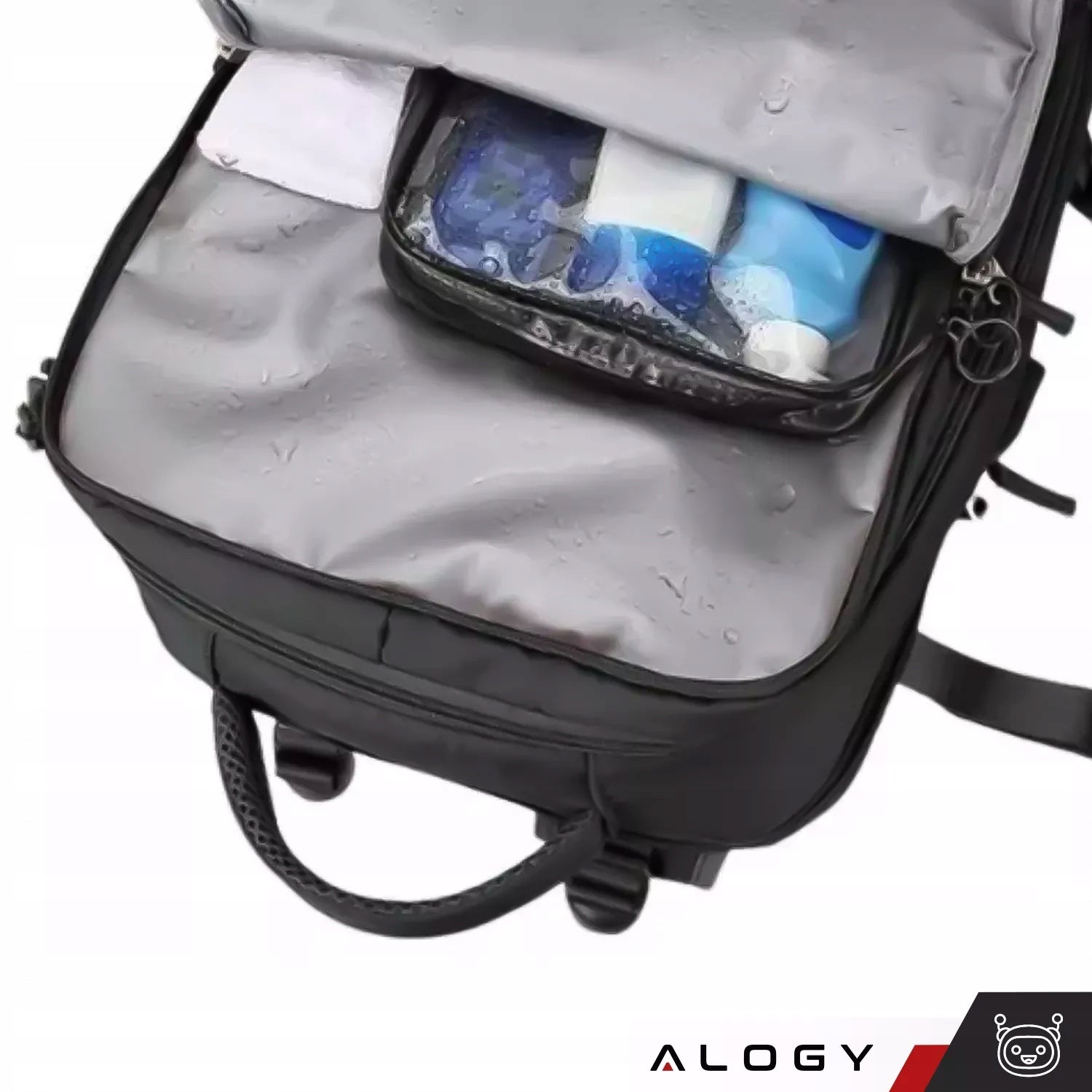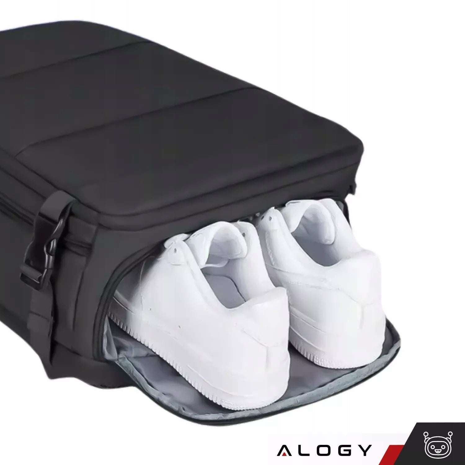 Mūsų kelioninio krepšio dizainas orientuotas į maksimalų funkcionalumą ir organizaciją. Pagrindinė didelė talpa, atsidaranti kaip lagaminas, leidžia patogiai susidėti drabužius ir didesnius daiktus. Ji papildyta 5 vidinėmis pertvaromis, kurios padeda palaikyti tvarką. Speciali galinė skyriaus dalis skirta saugiai laikyti nešiojamąjį kompiuterį ir jo priedus. Priekinėje dalyje rasite papildomų kišenių įvairiems smulkiems daiktams, tokiems kaip raktams, telefonui ar kosmetikai. Taip pat integruota speciali apatinė kišenė avalynei, kuri izoliuoja batus nuo likusio turinio, išlaikant švarą.