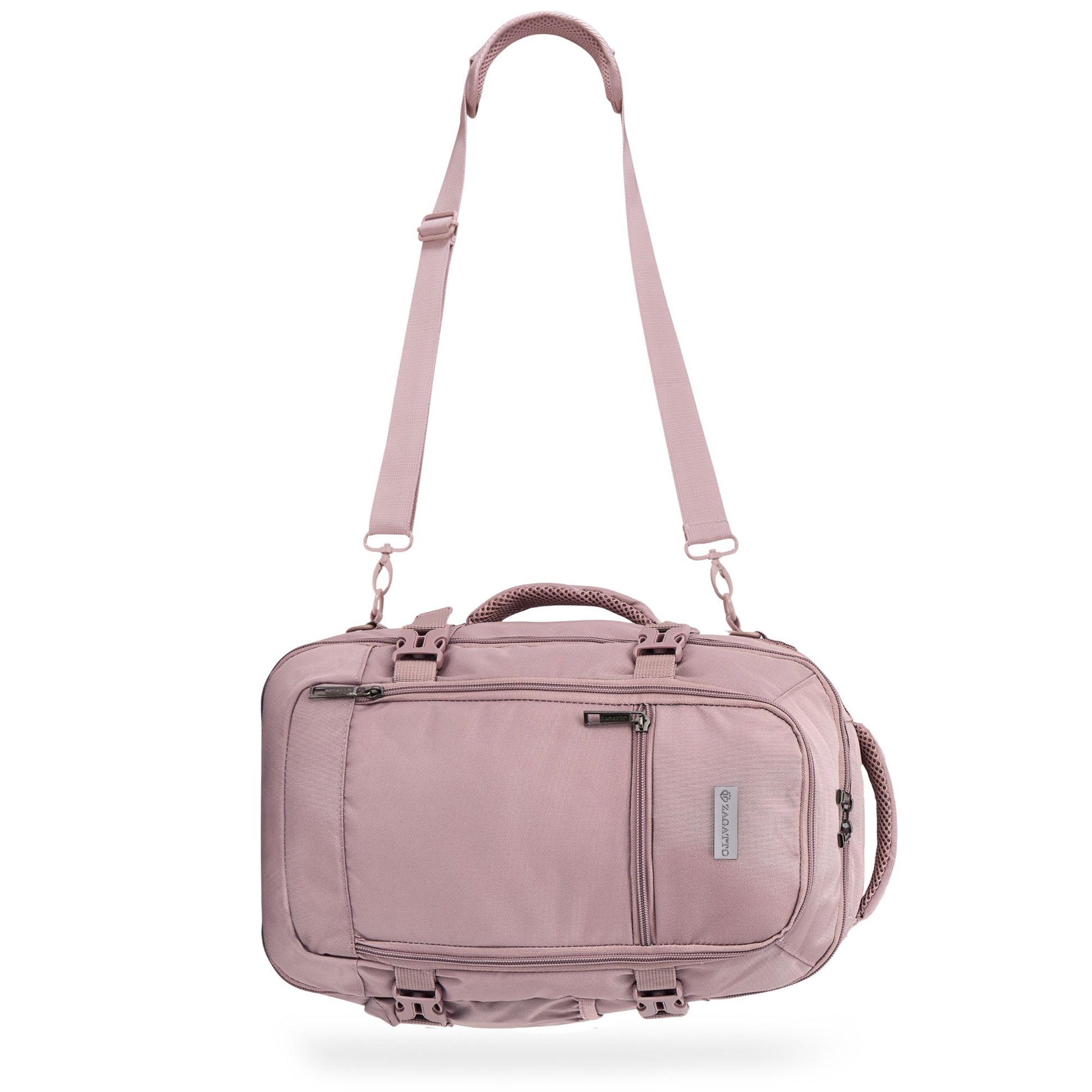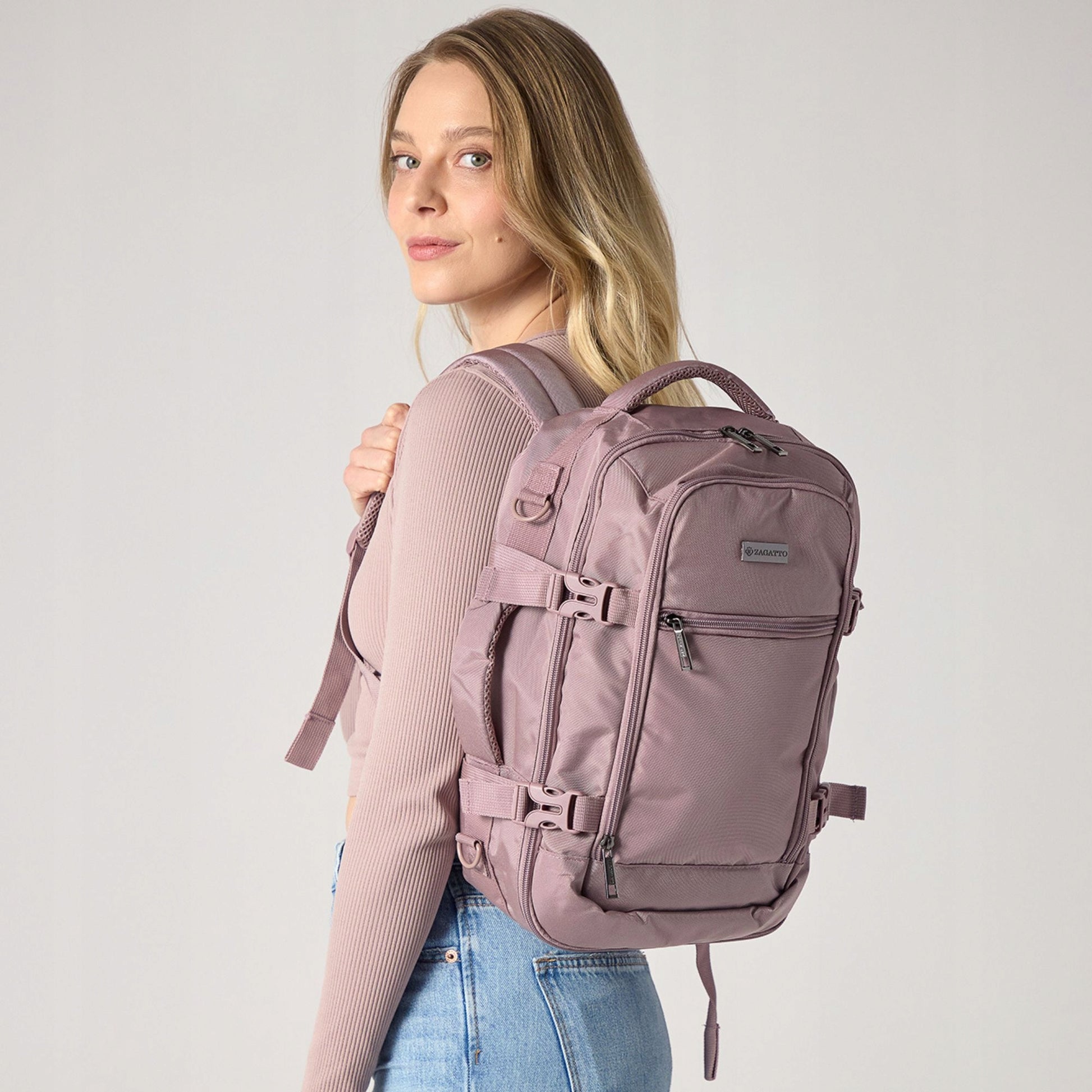 Stilinga ir funkcionali ZAGATTO® kuprinė – tai idealus pasirinkimas tiek kelionėms, tiek kasdieniam naudojimui. Kompaktiški išmatavimai (40x25x20 cm) atitinka nemokamo rankinio bagažo reikalavimus tokioms oro linijoms kaip Ryanair ar Wizzair, todėl puikiai tiks skrydžiams. Kuprinė išsiskiria praktiškais sprendimais: turi paslėptą kišenę nugaroje vertingiems daiktams, specialų diržą tvirtinimui prie lagamino rankenos, papildomą dirželį nešiojimui ant peties ir net atsegamą konstrukciją kaip lagaminas – dėl to viskas pasiekiama greitai ir patogiai. Du pagrindiniai skyriai leidžia puikiai susiorganizuoti – yra vieta nešiojamam kompiuteriui, rašikliams, dokumentams ar gėrimų buteliukui. Minkšta nugara su kvėpuojančia kempine bei reguliuojamos petnešos užtikrina komfortą net kuprinei esant pilnai prikrautai. Aukštos kokybės poliesterio ir nailono medžiaga garantuoja ilgaamžiškumą, o stilinga rožinė spalva suteikia kuprinei žavesio. Puikus pasirinkimas tiems, kurie nori keliauti lengvai, tvarkingai ir stilingai.
