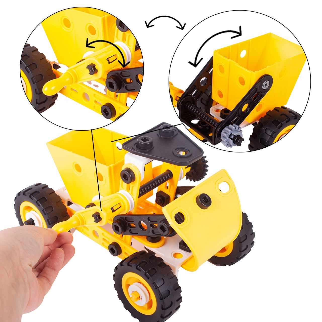 Konstruojant ir renkant transporto priemones, vaikai lavina daugybę svarbių įgūdžių. Nuo smulkiosios motorikos, koordinacijos, problemų sprendimo iki gebėjimo planuoti ir nuosekliai atlikti užduotis. Šis žaislas yra puiki alternatyva ekrano laikui, skatinanti fizinį aktyvumą ir bendravimą, ypač jei žaidžiama kartu su tėvais ar draugais. Jis suteikia galimybę suprasti, kaip veikia įvairūs mechanizmai, ir stimuliuoja mokslinį bei techninį smalsumą. Žaislas nereikalauja baterijų – jį maitina tik vaiko vaizduotė!