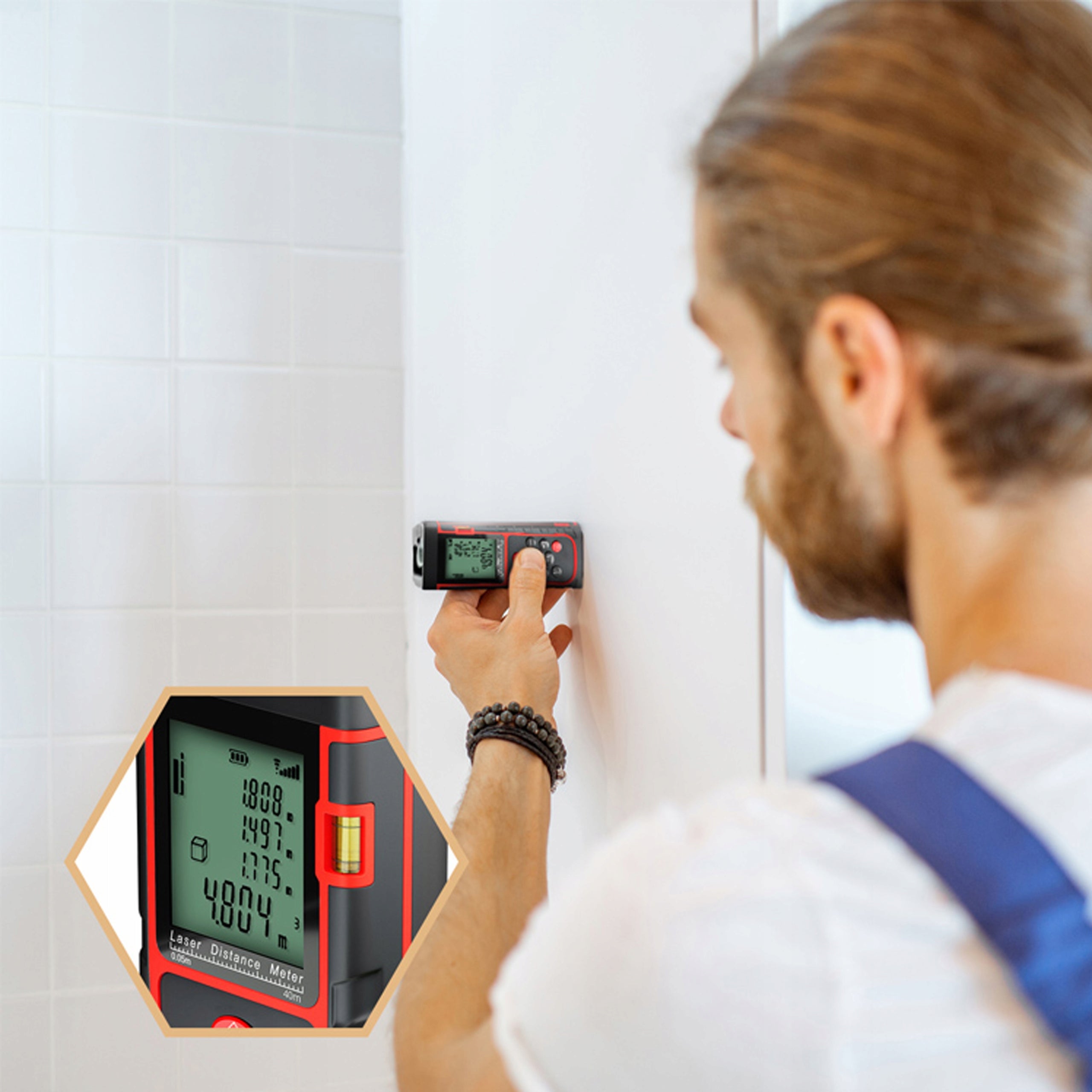 Mūsų lazerinis atstumo matuoklis pasižymi plačiomis naudojimo galimybėmis. Jis idealiai tinka įvairiems statybos, apdailos, interjero dizaino ir net namų remonto darbams. Galite lengvai apskaičiuoti atstumus, plotus, tūrius, o naudodami Pitagoro teoremos funkciją – matuoti aukštį ar kitus netiesioginius dydžius. Ergonomiška, kompaktiška konstrukcija ir tvirtas korpusas užtikrina patogų naudojimą rankoje ir ilgaamžiškumą, net ir dirbant sudėtingomis sąlygomis, nes prietaisas atitinka IP-54 apsaugos standartą, garantuojantį atsparumą dulkėms ir purslams.